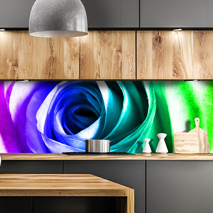 Bist Du es leid, auf die langweiligen, schwer zu reinigende Fliesen in Deiner Küche zu schauen? Stell Dir vor, wie Deine Küche mit einer stilvollen, modernen Rückwand zum Leben erwacht! Unsere Küchenrückwand 'Regenbogenrose Blüte' ist nicht nur ein optisches Highlight, sondern auch praktisch und pflegeleicht.