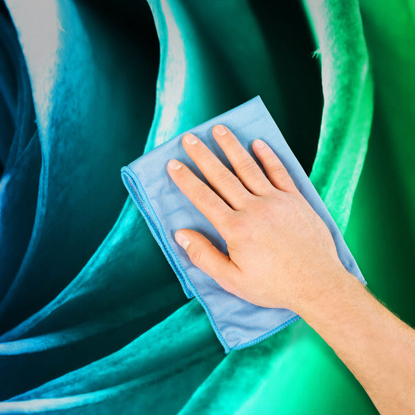 - Trockne die Oberfläche mit einem sauberen, fusselfreien Tuch ab, um Streifen oder Wasserflecken zu vermeiden.