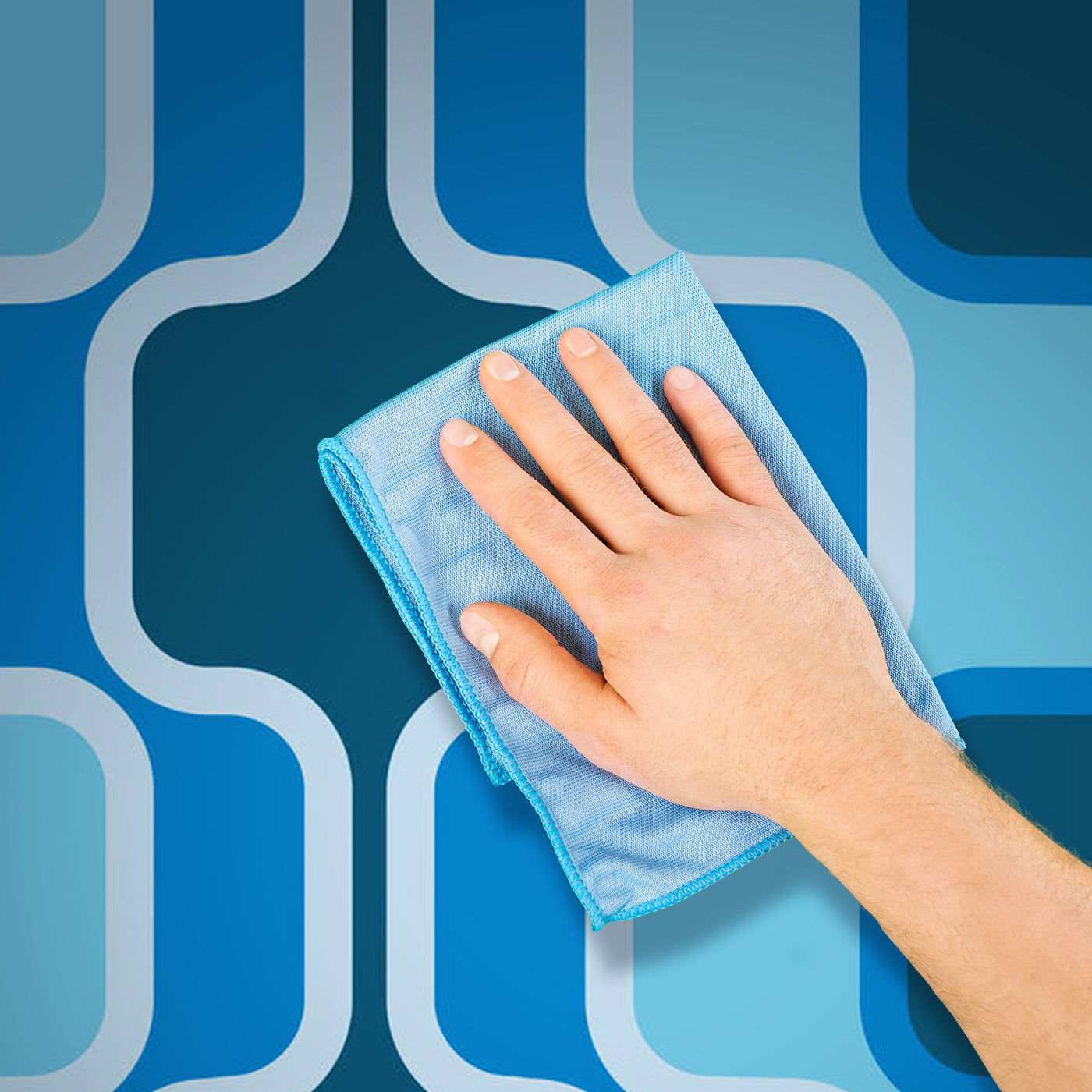 - Wische die Oberfläche mit einem feuchten Tuch oder Schwamm ab.