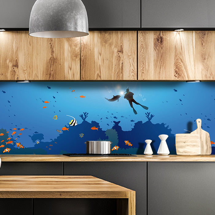 Bist Du es leid, auf die langweiligen, schwer zu reinigende Fliesen in Deiner Küche zu schauen? Stell Dir vor, wie Deine Küche mit einer stilvollen, modernen Rückwand zum Leben erwacht! Unsere Küchenrückwand 'Riff Meer' ist nicht nur ein optisches Highlight, sondern auch praktisch und pflegeleicht.