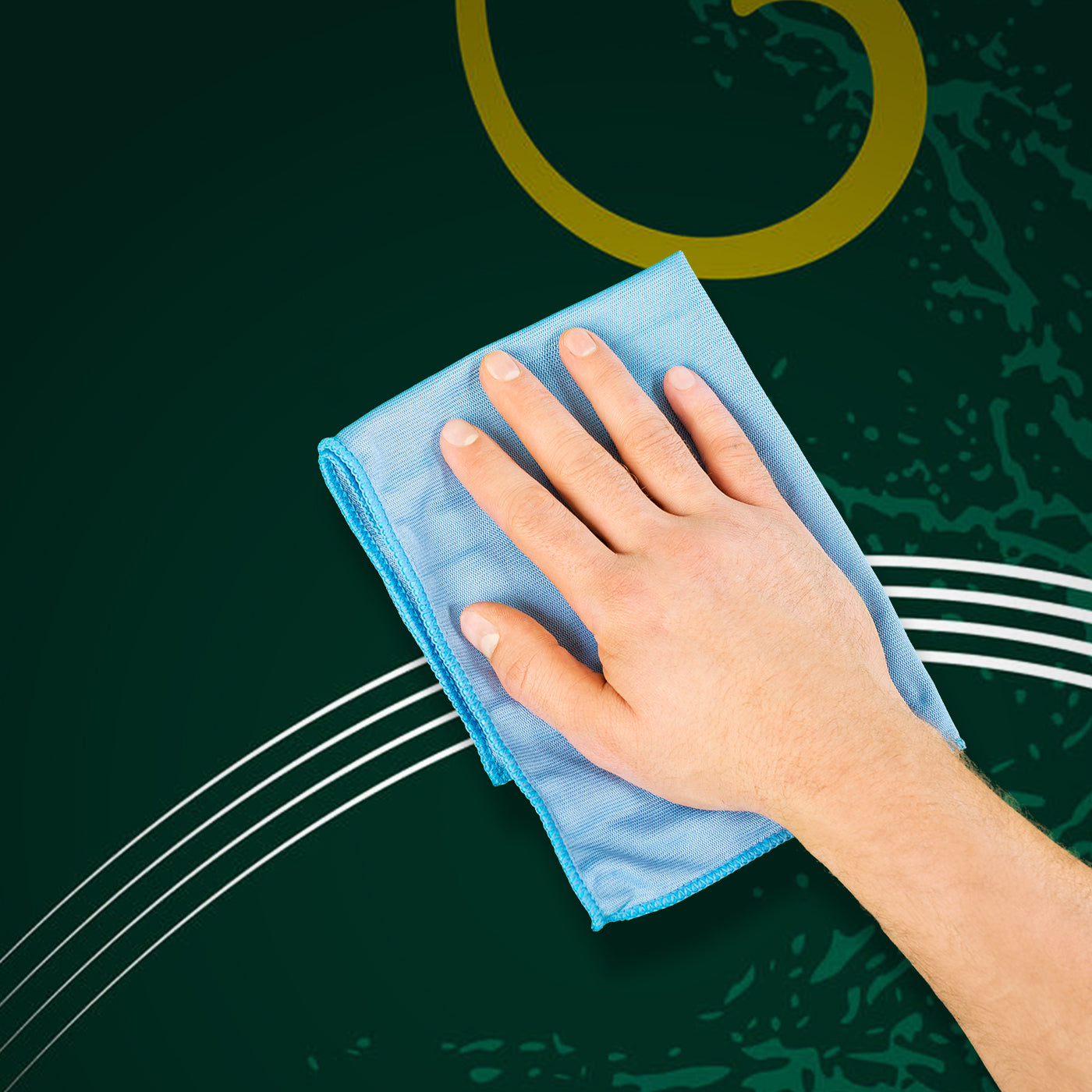 - Trockne die Oberfläche mit einem sauberen, fusselfreien Tuch ab, um Streifen oder Wasserflecken zu vermeiden.