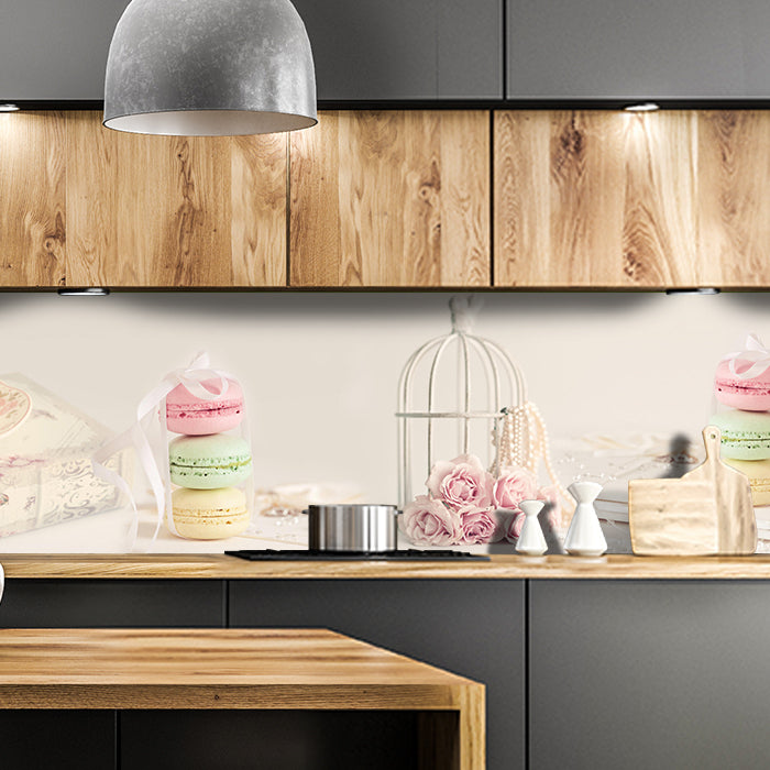 Bist Du es leid, auf die langweiligen, schwer zu reinigende Fliesen in Deiner Küche zu schauen? Stell Dir vor, wie Deine Küche mit einer stilvollen, modernen Rückwand zum Leben erwacht! Unsere Küchenrückwand 'Rosa hell Perlenkette Tasse Rosen' ist nicht nur ein optisches Highlight, sondern auch praktisch und pflegeleicht.