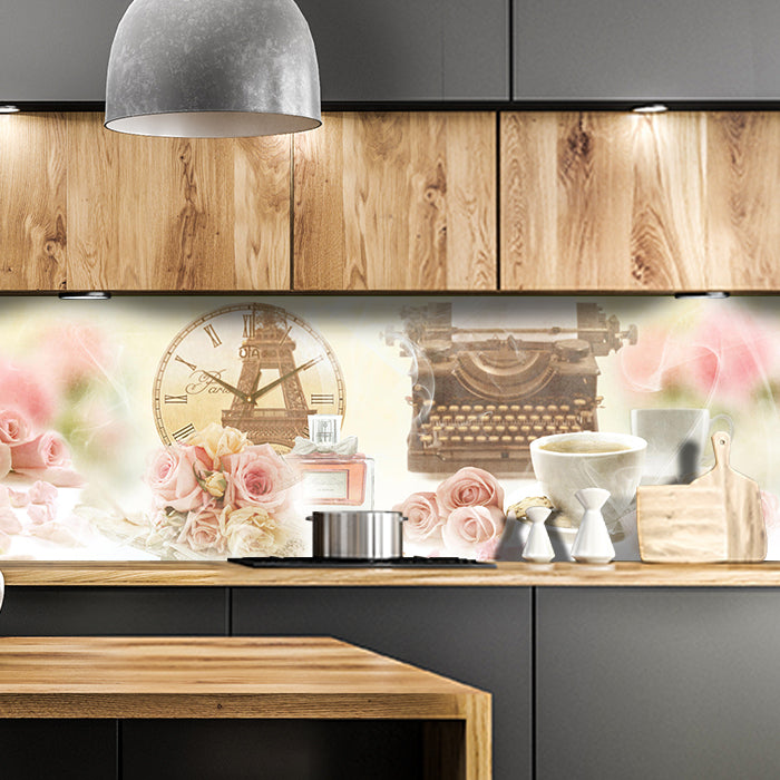 Küchenrückwand Rosen Rauch Uhr Schreibmaschine Kaffee M1118