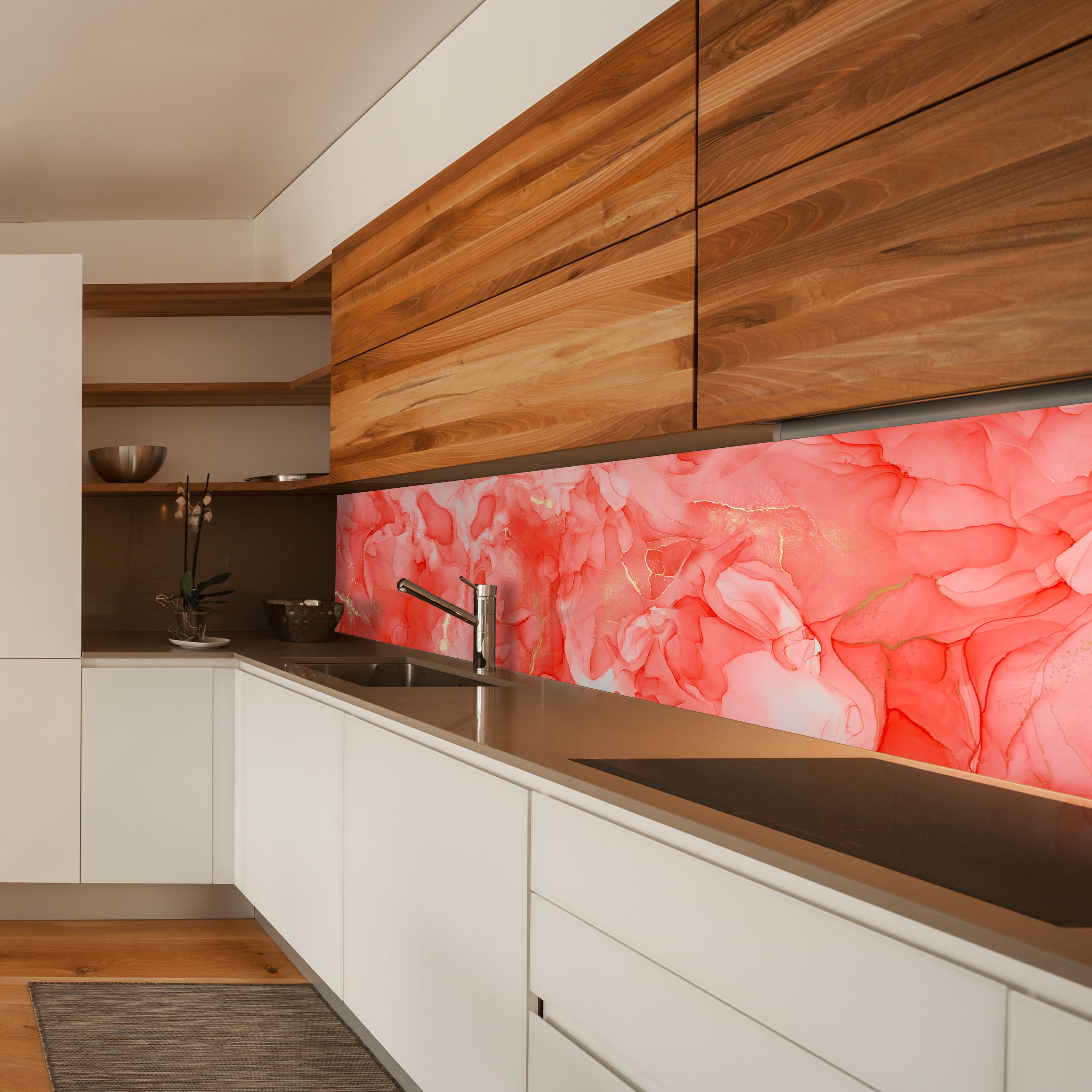 Bist Du es leid, auf die langweiligen, schwer zu reinigende Fliesen in Deiner Küche zu schauen? Stell Dir vor, wie Deine Küche mit einer stilvollen, modernen Rückwand zum Leben erwacht! Unsere Küchenrückwand 'roter Marmor, Stein' ist nicht nur ein optisches Highlight, sondern auch praktisch und pflegeleicht.