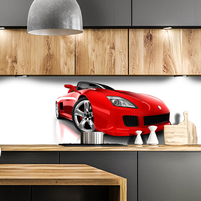 Bist Du es leid, auf die langweiligen, schwer zu reinigende Fliesen in Deiner Küche zu schauen? Stell Dir vor, wie Deine Küche mit einer stilvollen, modernen Rückwand zum Leben erwacht! Unsere Küchenrückwand 'Roter Sportwagen' ist nicht nur ein optisches Highlight, sondern auch praktisch und pflegeleicht.