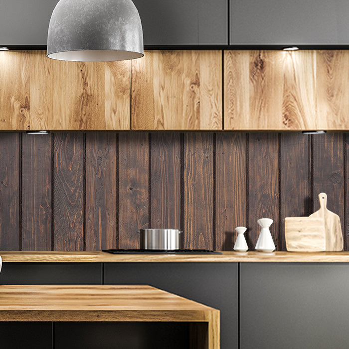 Bist Du es leid, auf die langweiligen, schwer zu reinigende Fliesen in Deiner Küche zu schauen? Stell Dir vor, wie Deine Küche mit einer stilvollen, modernen Rückwand zum Leben erwacht! Unsere Küchenrückwand 'Schwarze Kiefernholzwand' ist nicht nur ein optisches Highlight, sondern auch praktisch und pflegeleicht.