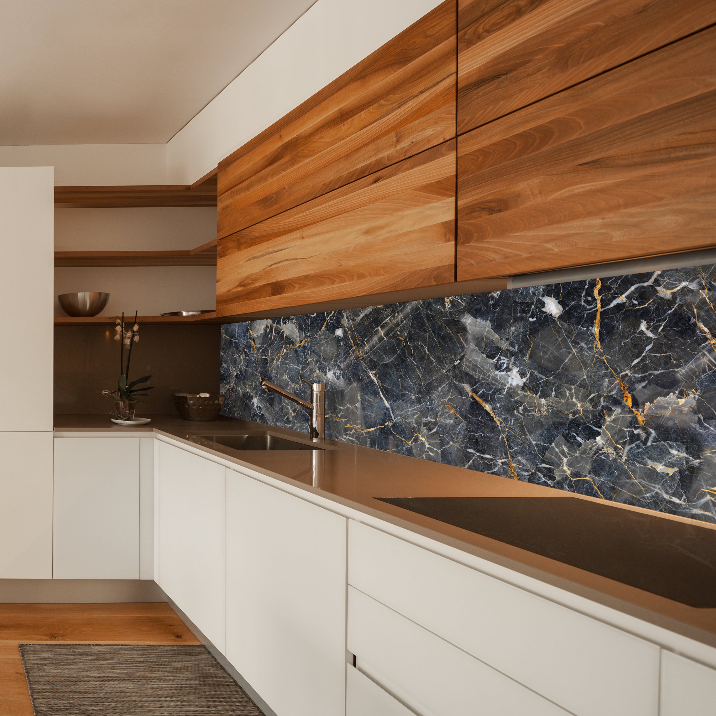 Bist Du es leid, auf die langweiligen, schwer zu reinigende Fliesen in Deiner Küche zu schauen? Stell Dir vor, wie Deine Küche mit einer stilvollen, modernen Rückwand zum Leben erwacht! Unsere Küchenrückwand 'schwarzer Marmor, Stein' ist nicht nur ein optisches Highlight, sondern auch praktisch und pflegeleicht.