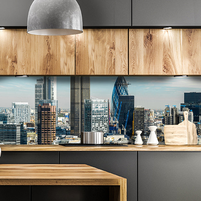 Bist Du es leid, auf die langweiligen, schwer zu reinigende Fliesen in Deiner Küche zu schauen? Stell Dir vor, wie Deine Küche mit einer stilvollen, modernen Rückwand zum Leben erwacht! Unsere Küchenrückwand 'Skyline London' ist nicht nur ein optisches Highlight, sondern auch praktisch und pflegeleicht.