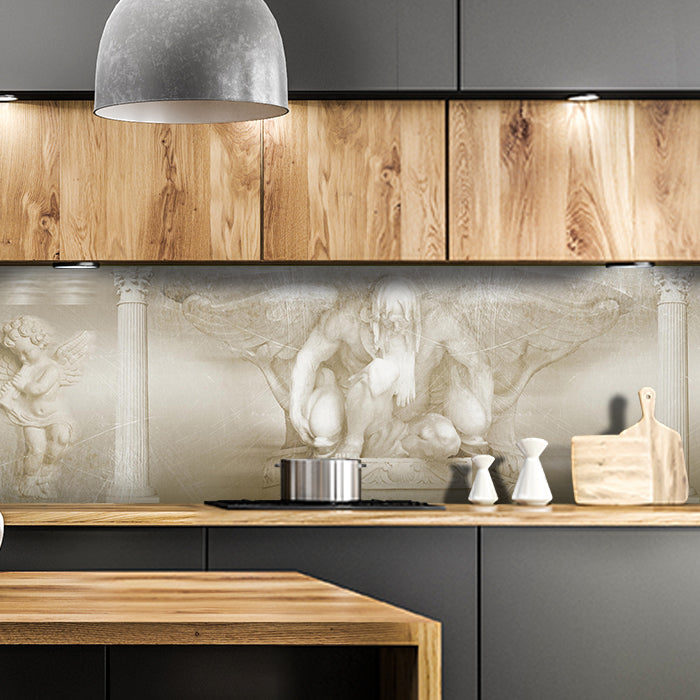 Bist Du es leid, auf die langweiligen, schwer zu reinigende Fliesen in Deiner Küche zu schauen? Stell Dir vor, wie Deine Küche mit einer stilvollen, modernen Rückwand zum Leben erwacht! Unsere Küchenrückwand 'Statue Engel Weiß Hell Flügel Säulen' ist nicht nur ein optisches Highlight, sondern auch praktisch und pflegeleicht.