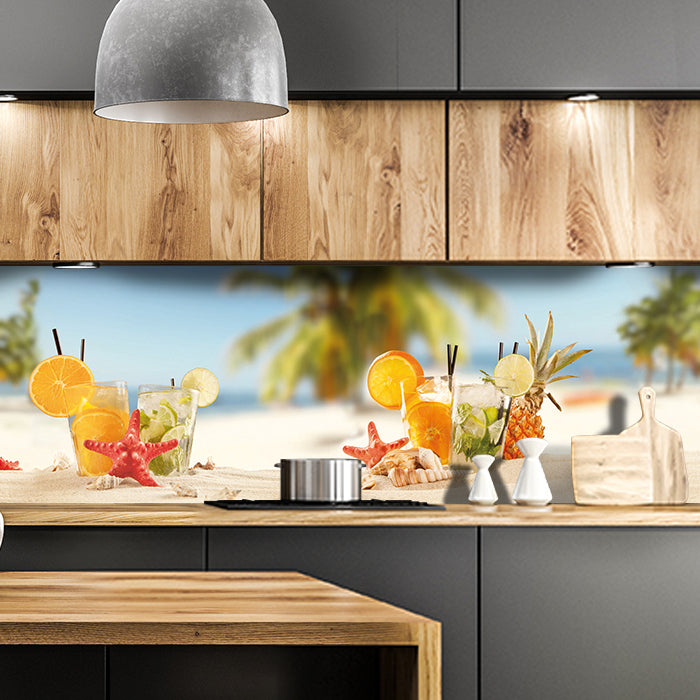 Küchenrückwand Strand Cocktail Seestern Orange Limette M1128