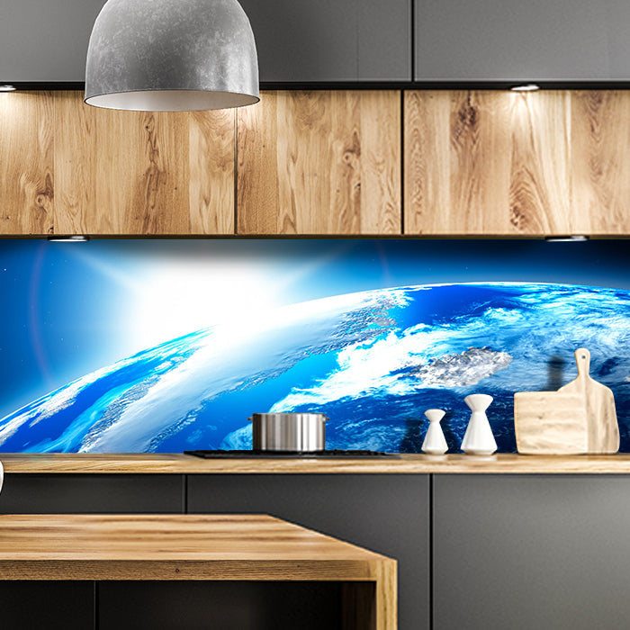 Bist Du es leid, auf die langweiligen, schwer zu reinigende Fliesen in Deiner Küche zu schauen? Stell Dir vor, wie Deine Küche mit einer stilvollen, modernen Rückwand zum Leben erwacht! Unsere Küchenrückwand 'Sunrise Earth Space' ist nicht nur ein optisches Highlight, sondern auch praktisch und pflegeleicht.