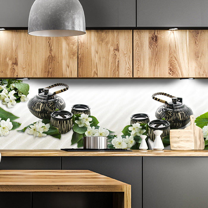 Küchenrückwand Tasse Schwarz Weiß Muster Tee Kanne M1155