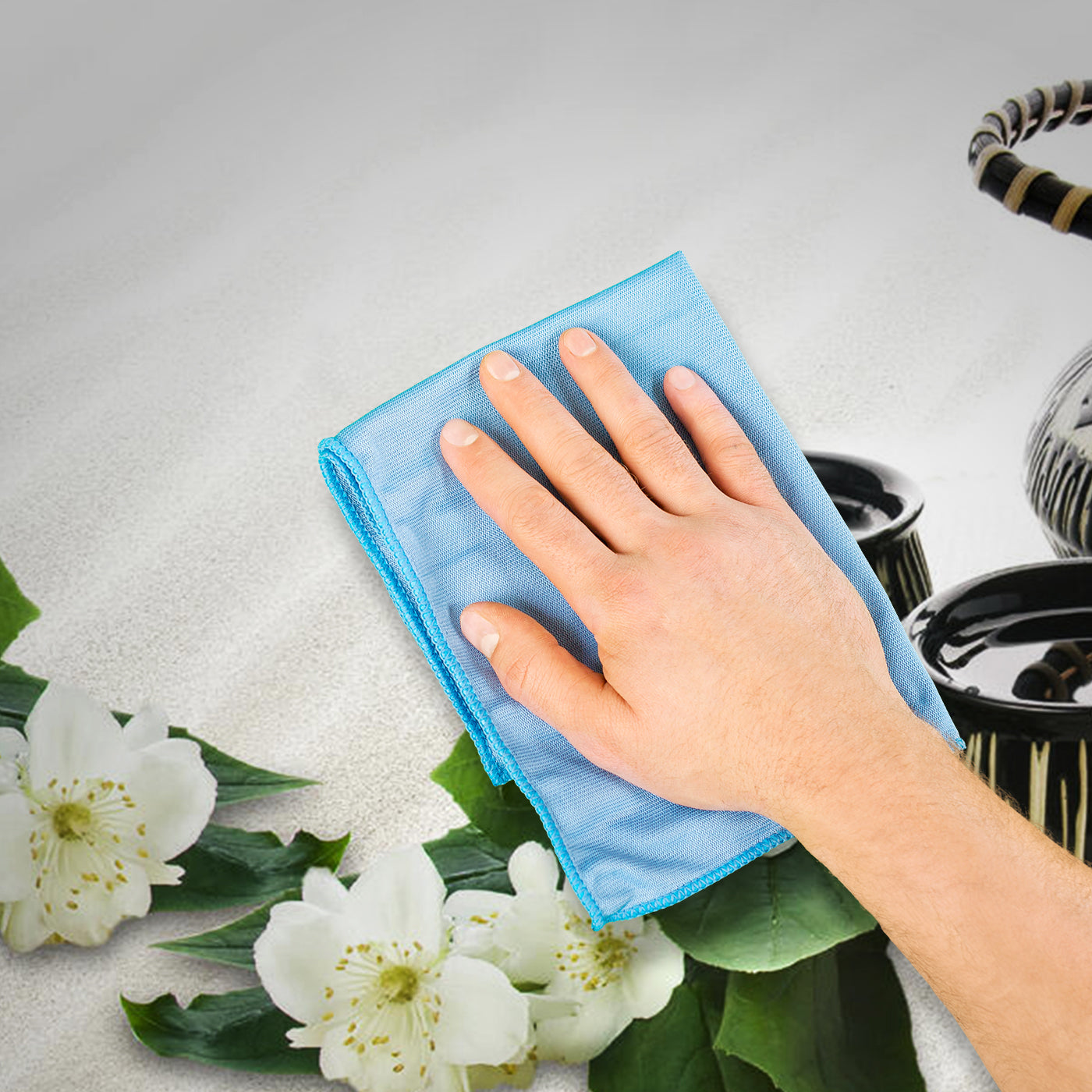 - Wische die Oberfläche mit einem feuchten Tuch oder Schwamm ab.
