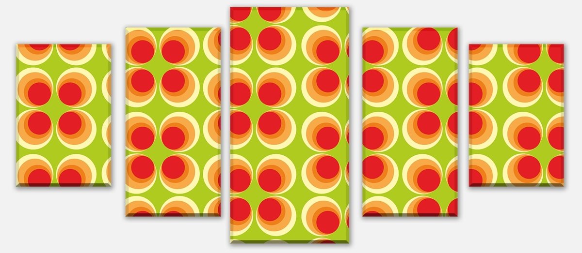 Leinwandbild Mehrteiler Retrokreise Orange Muster
