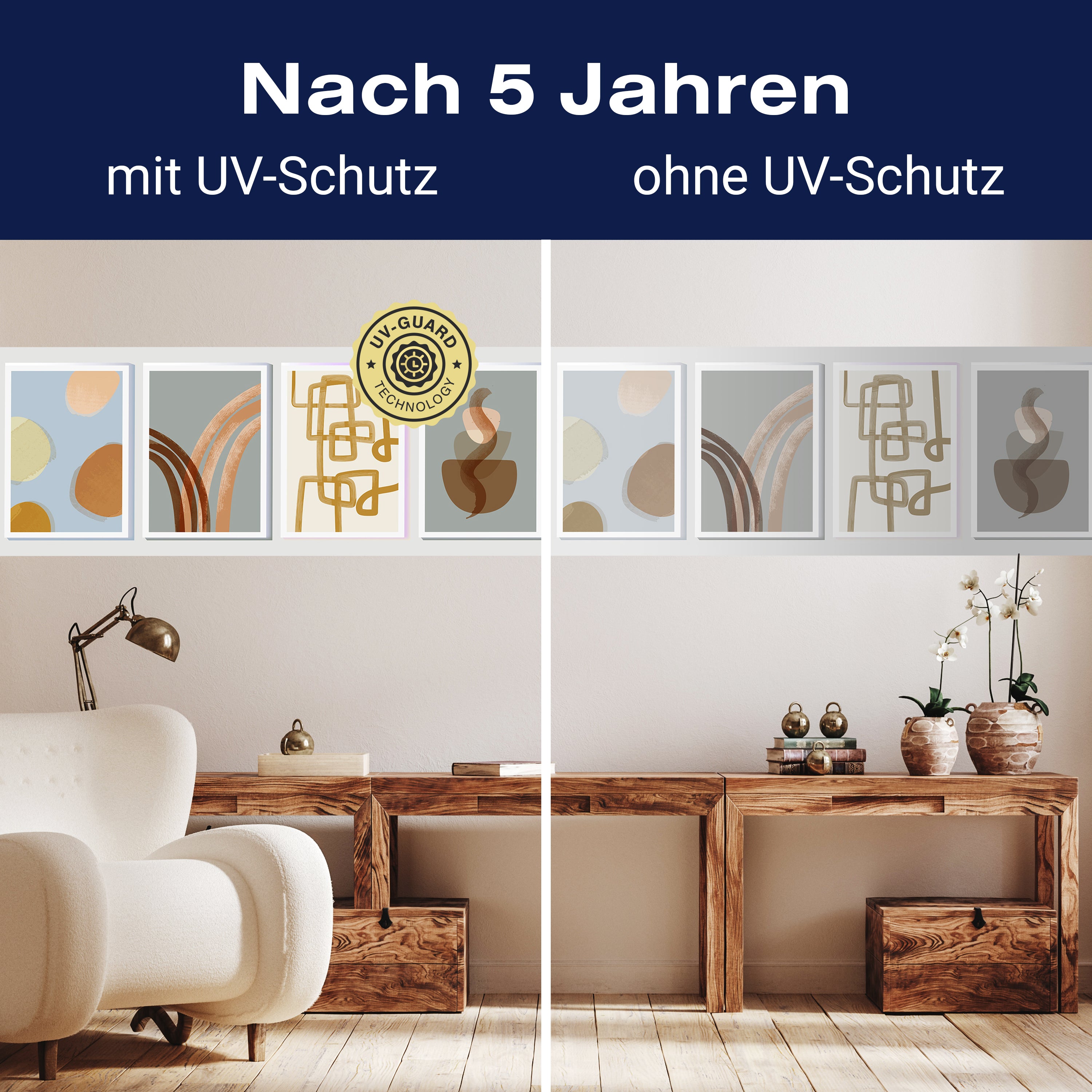 Setze auf die UV-Guard-Technologie, um deine selbstklebenden Panorama-Fototapeten nicht nur atemberaubend, sondern auch dauerhaft strahlend zu gestalten. Dieser fortschrittliche UV-Schutz sorgt dafür, dass die lebhaften Farben und scharfen Details deiner Wandgestaltung gegen die bleichende Wirkung der Sonnenstrahlen geschützt sind. Egal, wie intensiv das Sonnenlicht ist, die UV-Guard-Technologie bewahrt die Brillanz und Tiefe deiner Bilder, sodass sie jahrelang wie neu aussehen. Mach dir keine Sorgen mehr über verblassende Farben oder den Verlust von Detailreichtum. Mit dieser Technologie investierst du in die Langlebigkeit und Schönheit deiner Räume. Steige jetzt um auf UV-Guard und genieße ungetrübte Farbenpracht bei jedem Licht.