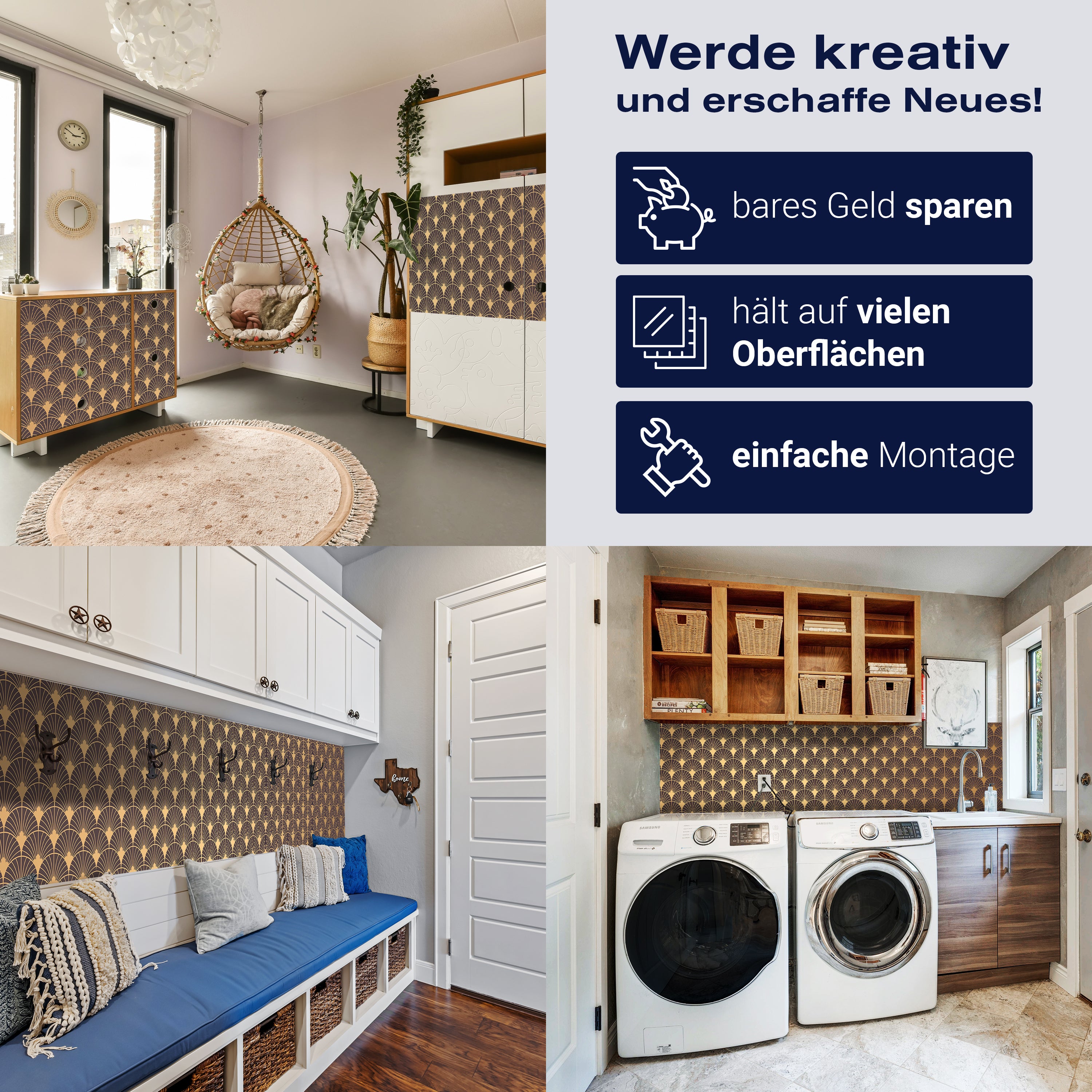 - Selbstklebendes Vlies 150g/m²: Einfach anzubringen, perfekt für Mietwohnungen.