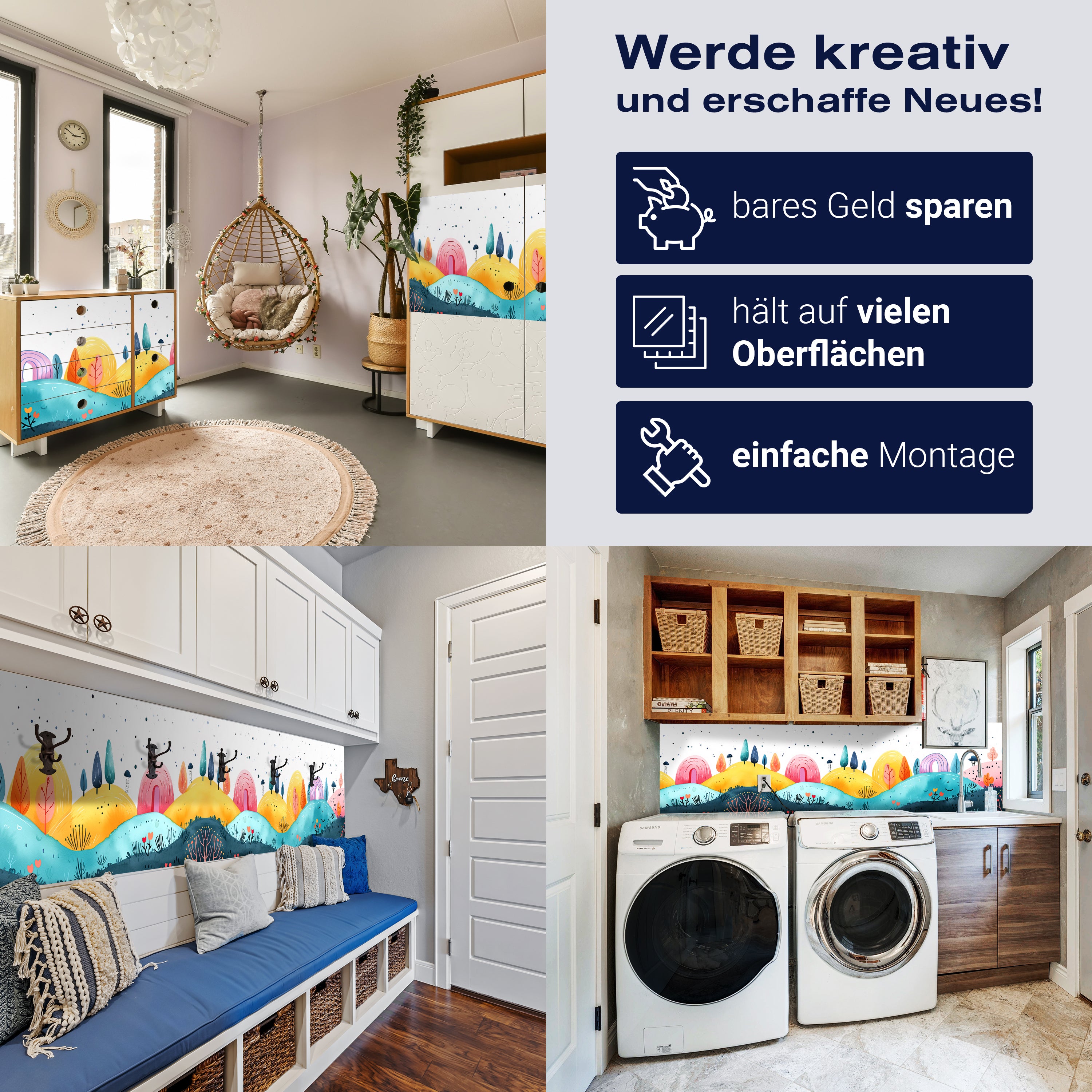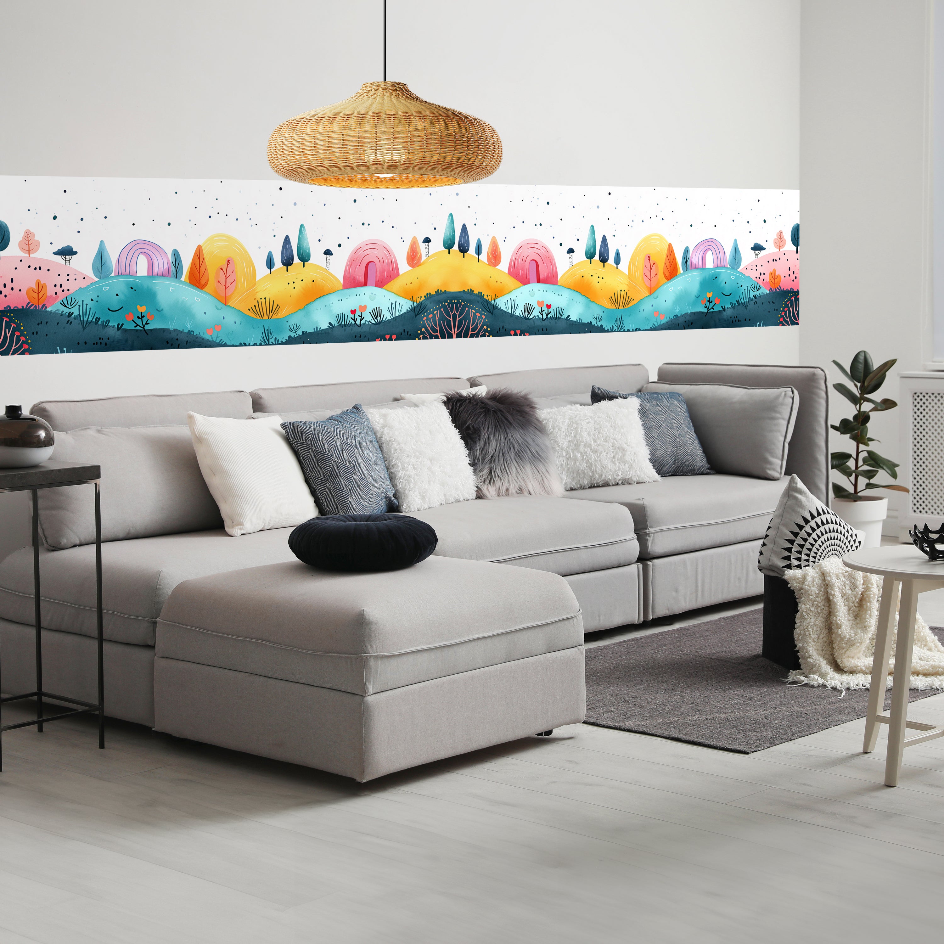 Träumst Du davon, Deine Wände in eine beeindruckende Kunstgalerie zu verwandeln? Mit unserer hochwertigen Panorama-Fototapete Buntes Traumland M0119 ist es jetzt möglich! Jede Wand wird zu einer Leinwand Deiner Kreativität.