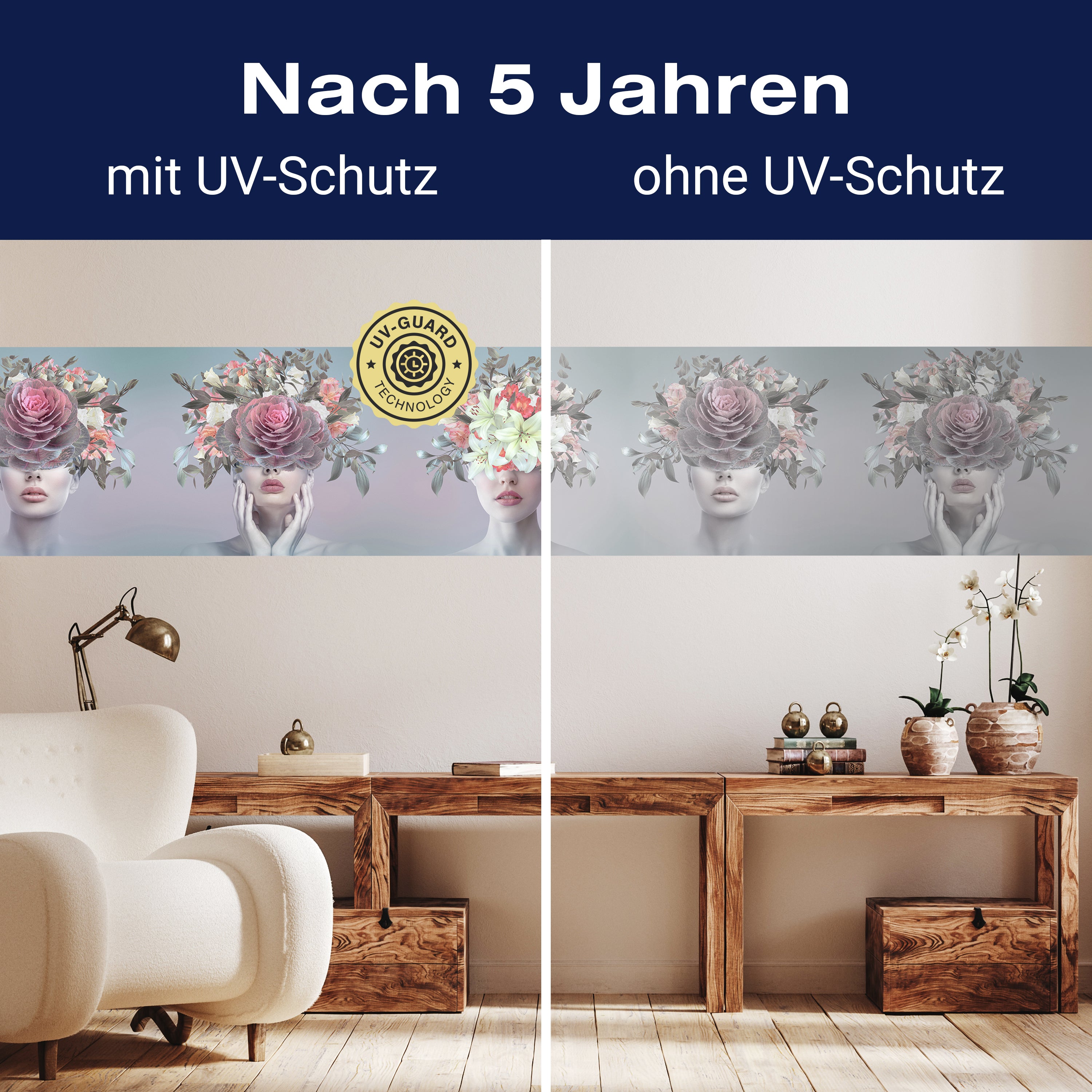 Setze auf die UV-Guard-Technologie, um deine selbstklebenden Panorama-Fototapeten nicht nur atemberaubend, sondern auch dauerhaft strahlend zu gestalten. Dieser fortschrittliche UV-Schutz sorgt dafür, dass die lebhaften Farben und scharfen Details deiner Wandgestaltung gegen die bleichende Wirkung der Sonnenstrahlen geschützt sind. Egal, wie intensiv das Sonnenlicht ist, die UV-Guard-Technologie bewahrt die Brillanz und Tiefe deiner Bilder, sodass sie jahrelang wie neu aussehen. Mach dir keine Sorgen mehr über verblassende Farben oder den Verlust von Detailreichtum. Mit dieser Technologie investierst du in die Langlebigkeit und Schönheit deiner Räume. Steige jetzt um auf UV-Guard und genieße ungetrübte Farbenpracht bei jedem Licht.