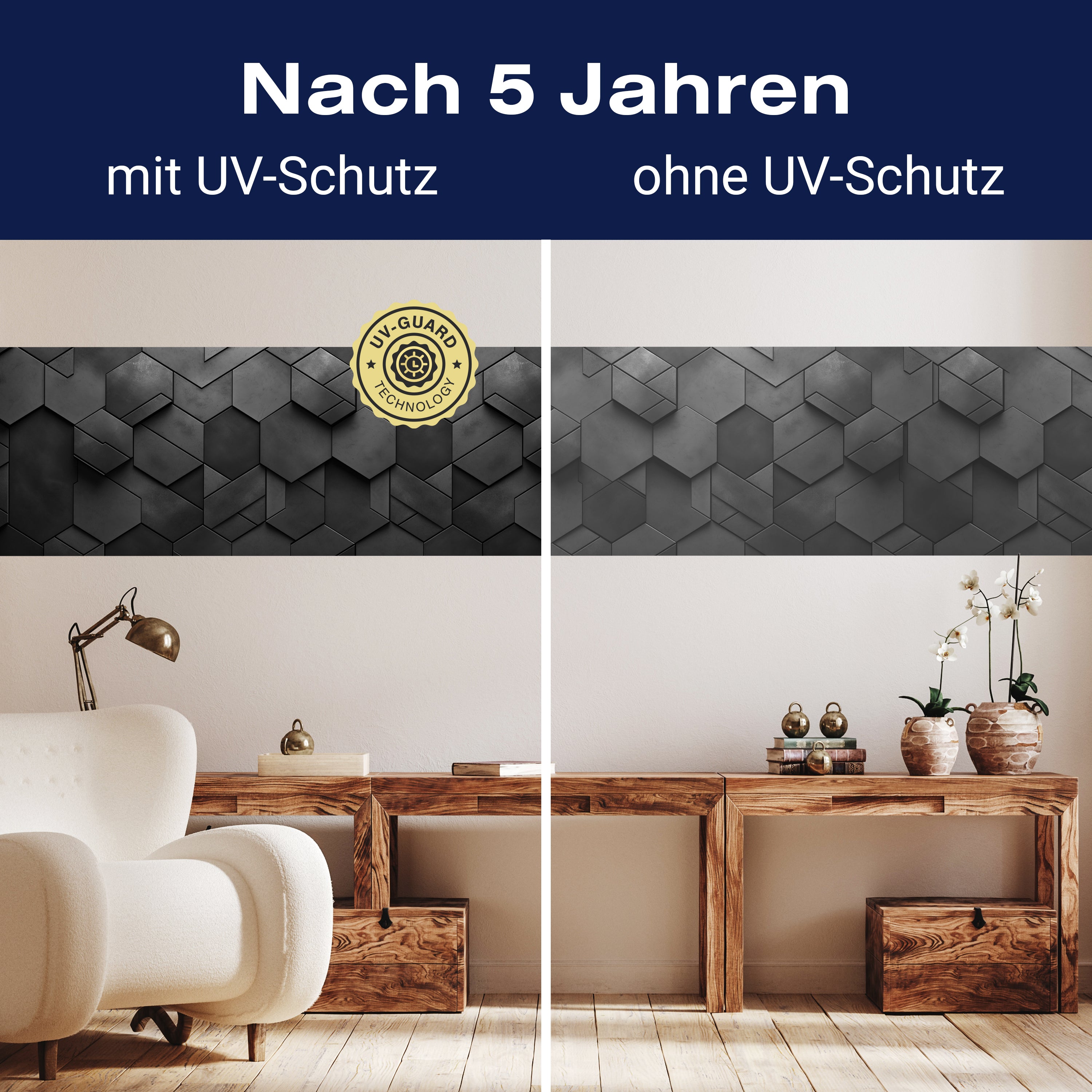 Setze auf die UV-Guard-Technologie, um deine selbstklebenden Panorama-Fototapeten nicht nur atemberaubend, sondern auch dauerhaft strahlend zu gestalten. Dieser fortschrittliche UV-Schutz sorgt dafür, dass die lebhaften Farben und scharfen Details deiner Wandgestaltung gegen die bleichende Wirkung der Sonnenstrahlen geschützt sind. Egal, wie intensiv das Sonnenlicht ist, die UV-Guard-Technologie bewahrt die Brillanz und Tiefe deiner Bilder, sodass sie jahrelang wie neu aussehen. Mach dir keine Sorgen mehr über verblassende Farben oder den Verlust von Detailreichtum. Mit dieser Technologie investierst du in die Langlebigkeit und Schönheit deiner Räume. Steige jetzt um auf UV-Guard und genieße ungetrübte Farbenpracht bei jedem Licht.