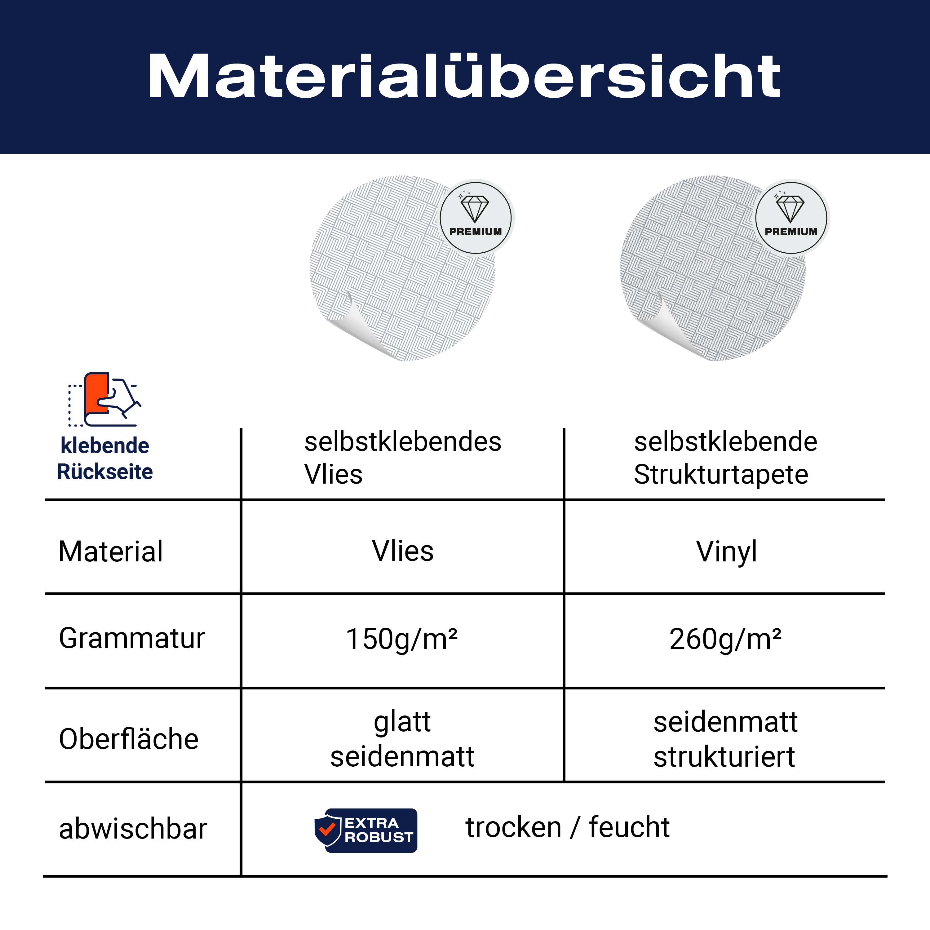 - Selbstklebendes Vlies 150g/m²: Einfach anzubringen, perfekt für Mietwohnungen.