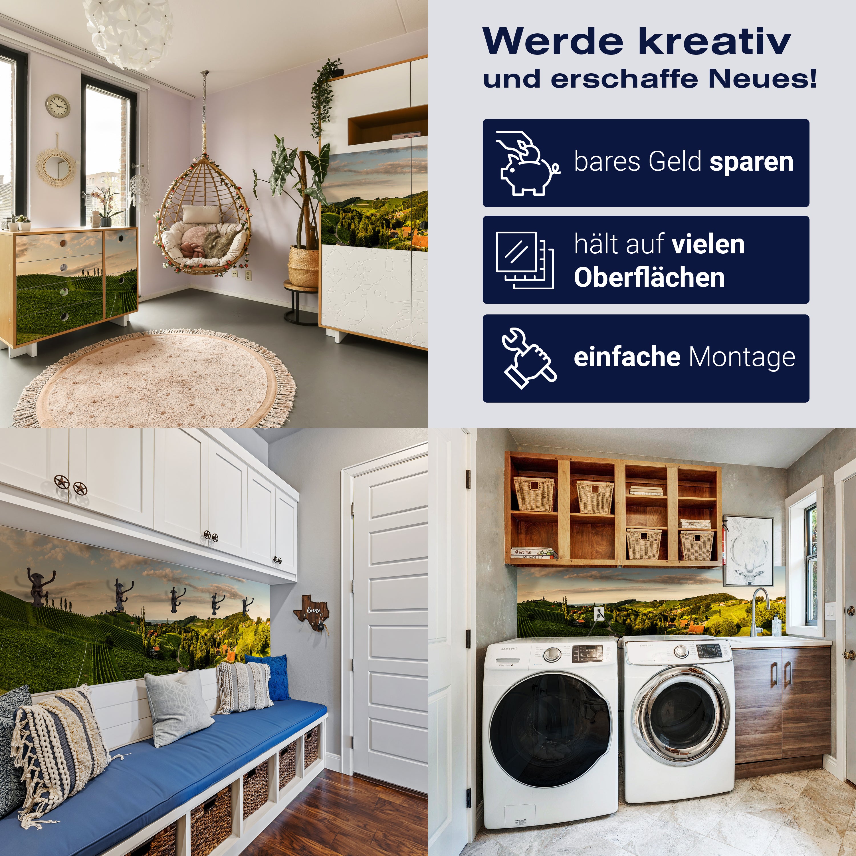 Träumst Du davon, Deine Wände in eine beeindruckende Kunstgalerie zu verwandeln? Mit unserer hochwertigen Panorama-Fototapete Idyllisches Weingut M0044 ist es jetzt möglich! Jede Wand wird zu einer Leinwand Deiner Kreativität.