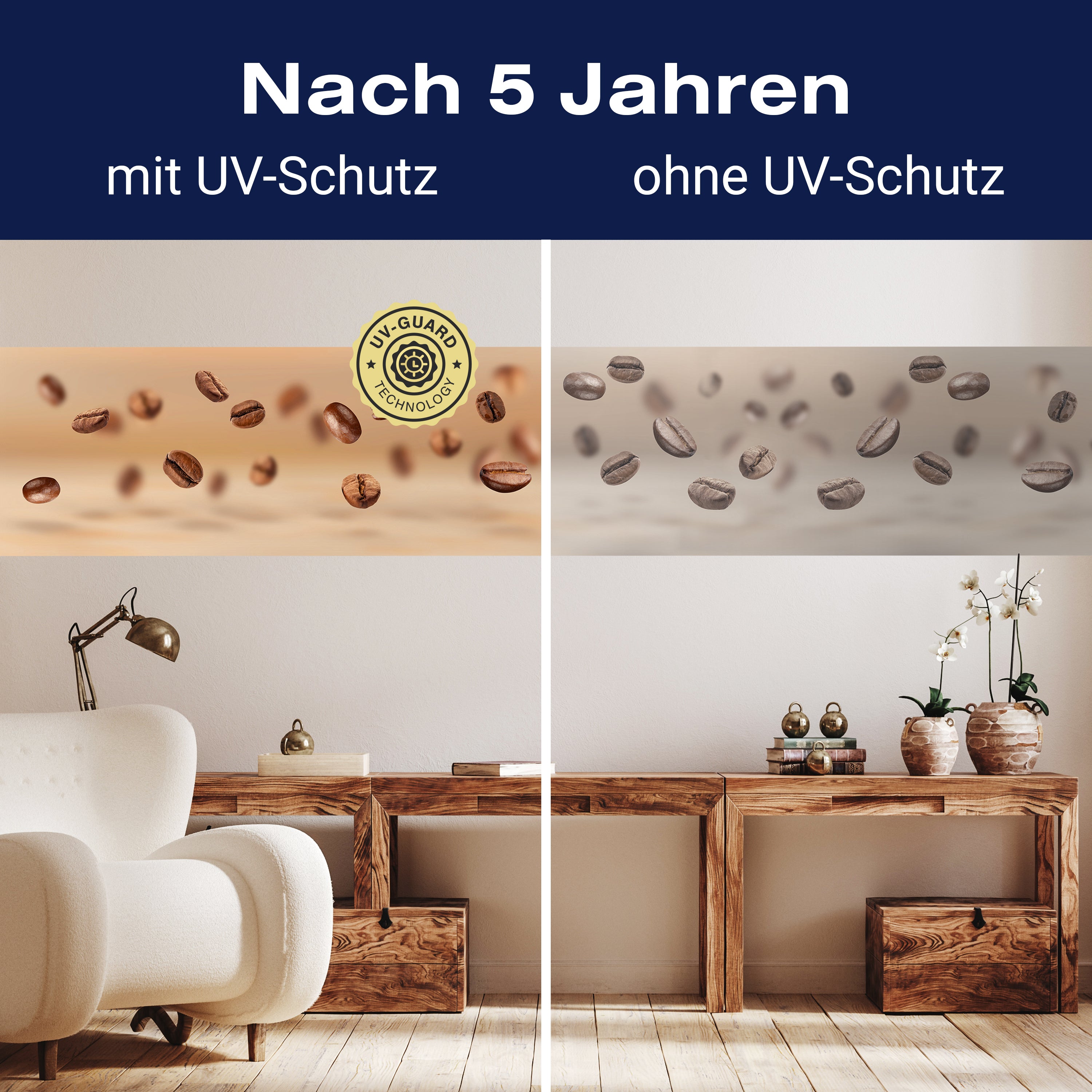 Setze auf die UV-Guard-Technologie, um deine selbstklebenden Panorama-Fototapeten nicht nur atemberaubend, sondern auch dauerhaft strahlend zu gestalten. Dieser fortschrittliche UV-Schutz sorgt dafür, dass die lebhaften Farben und scharfen Details deiner Wandgestaltung gegen die bleichende Wirkung der Sonnenstrahlen geschützt sind. Egal, wie intensiv das Sonnenlicht ist, die UV-Guard-Technologie bewahrt die Brillanz und Tiefe deiner Bilder, sodass sie jahrelang wie neu aussehen. Mach dir keine Sorgen mehr über verblassende Farben oder den Verlust von Detailreichtum. Mit dieser Technologie investierst du in die Langlebigkeit und Schönheit deiner Räume. Steige jetzt um auf UV-Guard und genieße ungetrübte Farbenpracht bei jedem Licht.