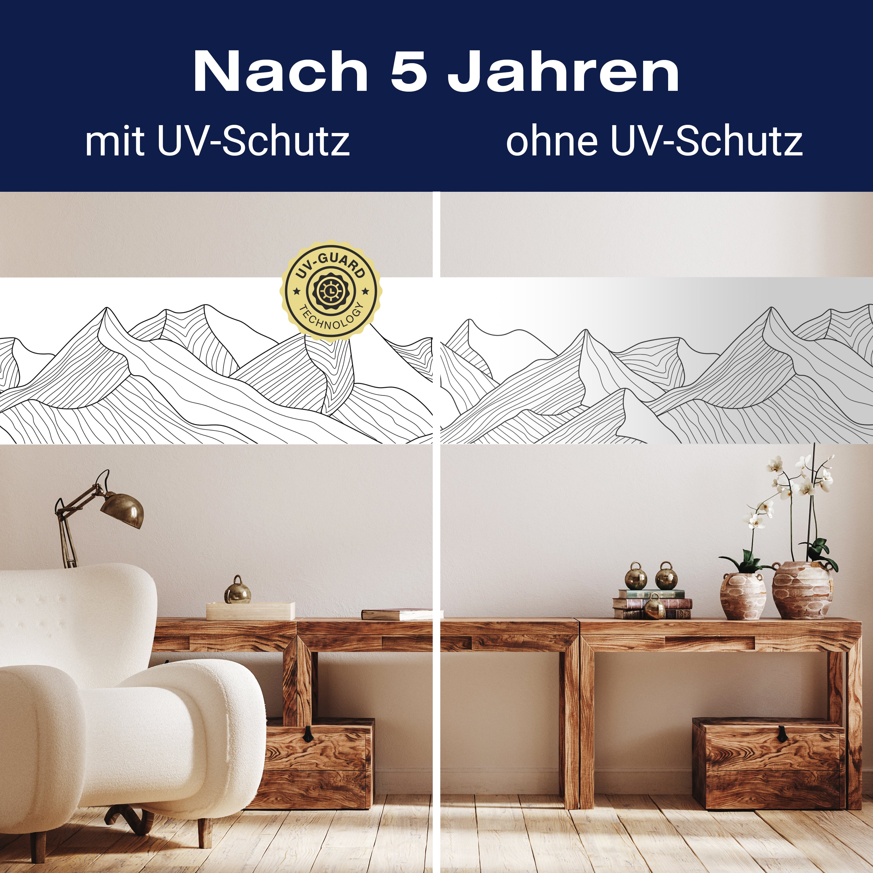 Setze auf die UV-Guard-Technologie, um deine selbstklebenden Panorama-Fototapeten nicht nur atemberaubend, sondern auch dauerhaft strahlend zu gestalten. Dieser fortschrittliche UV-Schutz sorgt dafür, dass die lebhaften Farben und scharfen Details deiner Wandgestaltung gegen die bleichende Wirkung der Sonnenstrahlen geschützt sind. Egal, wie intensiv das Sonnenlicht ist, die UV-Guard-Technologie bewahrt die Brillanz und Tiefe deiner Bilder, sodass sie jahrelang wie neu aussehen. Mach dir keine Sorgen mehr über verblassende Farben oder den Verlust von Detailreichtum. Mit dieser Technologie investierst du in die Langlebigkeit und Schönheit deiner Räume. Steige jetzt um auf UV-Guard und genieße ungetrübte Farbenpracht bei jedem Licht.