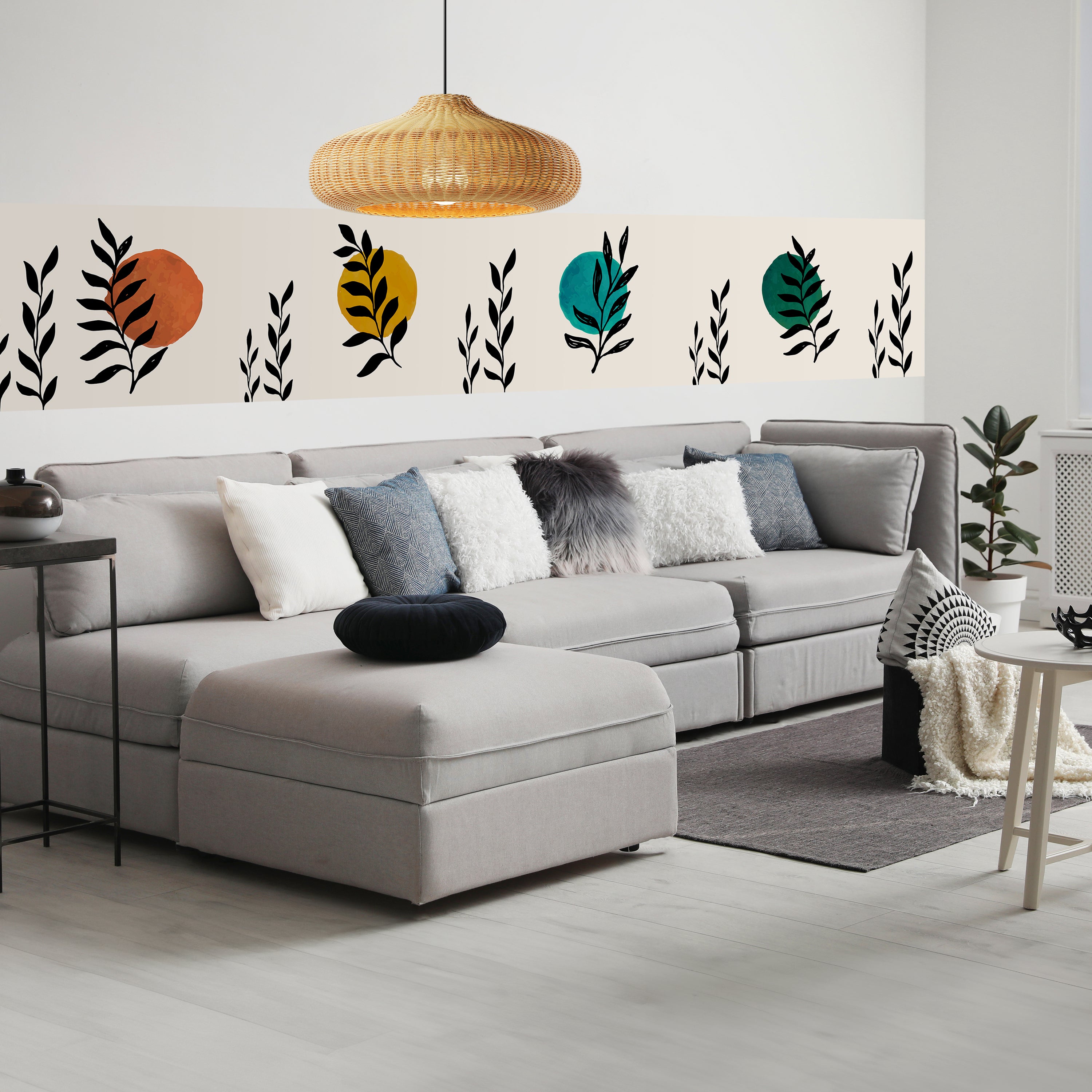 Träumst Du davon, Deine Wände in eine beeindruckende Kunstgalerie zu verwandeln? Mit unserer hochwertigen Panorama-Fototapete Minimalistische Pflanzen M0069 ist es jetzt möglich! Jede Wand wird zu einer Leinwand Deiner Kreativität.