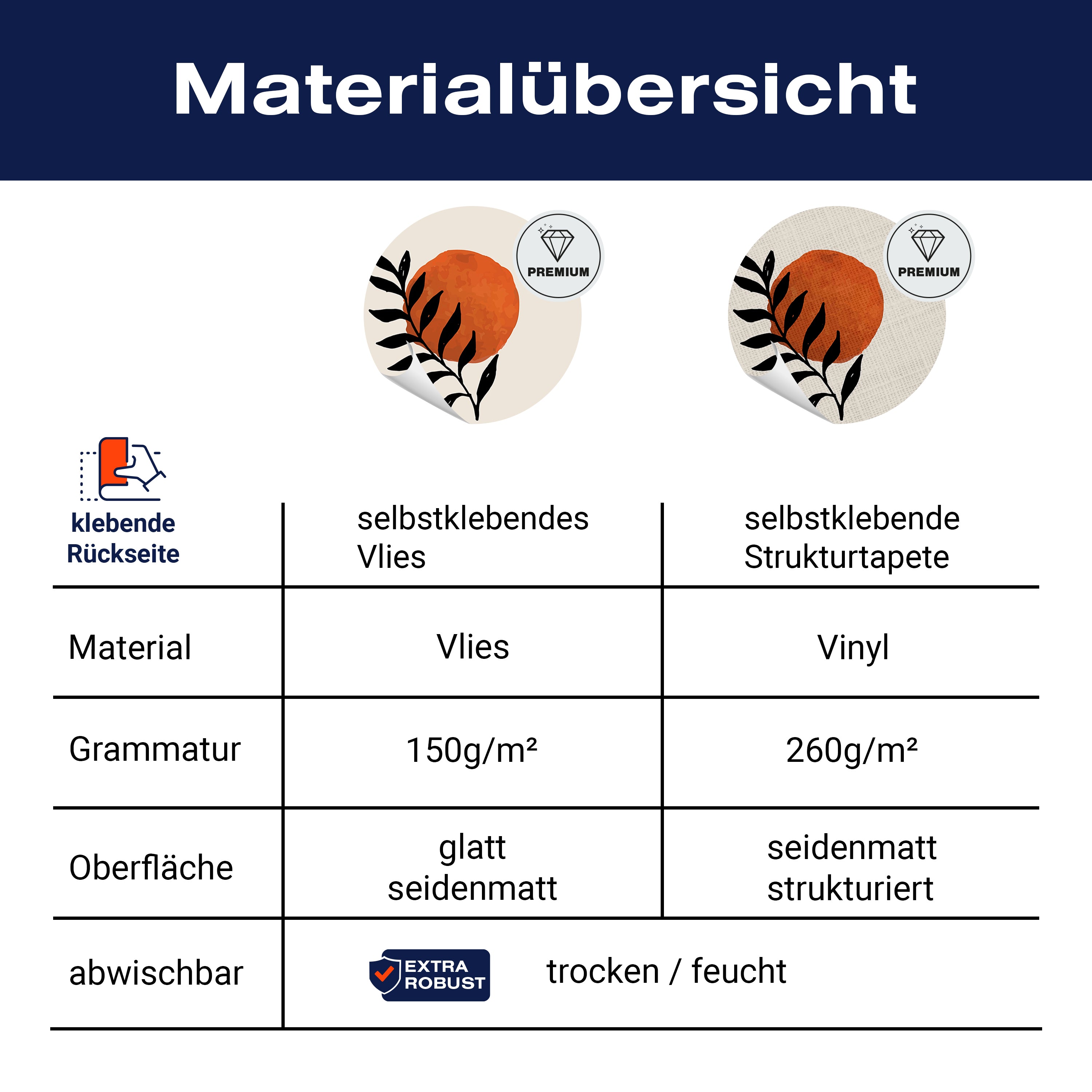 - Selbstklebendes Vlies 150g/m²: Einfach anzubringen, perfekt für Mietwohnungen.