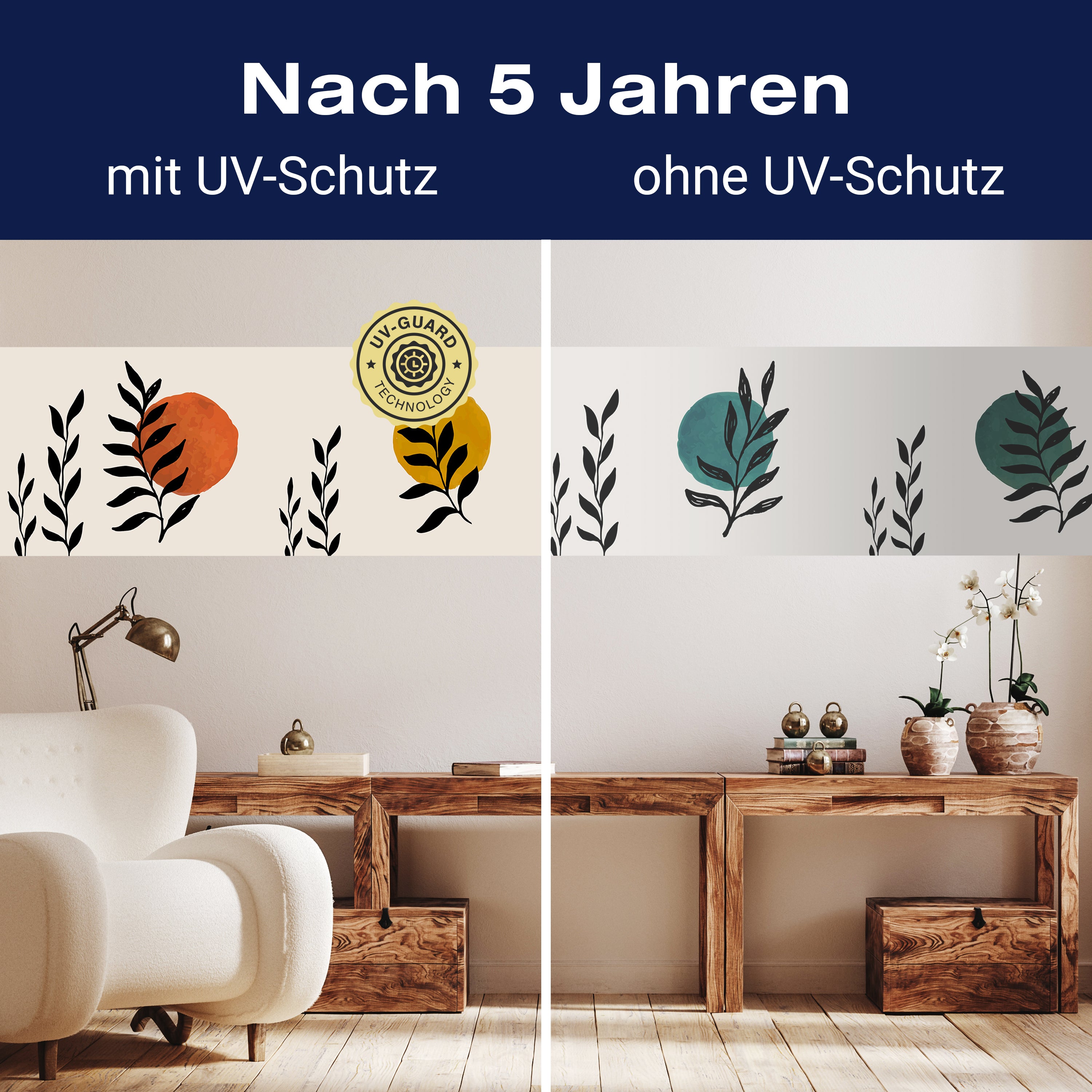 Setze auf die UV-Guard-Technologie, um deine selbstklebenden Panorama-Fototapeten nicht nur atemberaubend, sondern auch dauerhaft strahlend zu gestalten. Dieser fortschrittliche UV-Schutz sorgt dafür, dass die lebhaften Farben und scharfen Details deiner Wandgestaltung gegen die bleichende Wirkung der Sonnenstrahlen geschützt sind. Egal, wie intensiv das Sonnenlicht ist, die UV-Guard-Technologie bewahrt die Brillanz und Tiefe deiner Bilder, sodass sie jahrelang wie neu aussehen. Mach dir keine Sorgen mehr über verblassende Farben oder den Verlust von Detailreichtum. Mit dieser Technologie investierst du in die Langlebigkeit und Schönheit deiner Räume. Steige jetzt um auf UV-Guard und genieße ungetrübte Farbenpracht bei jedem Licht.