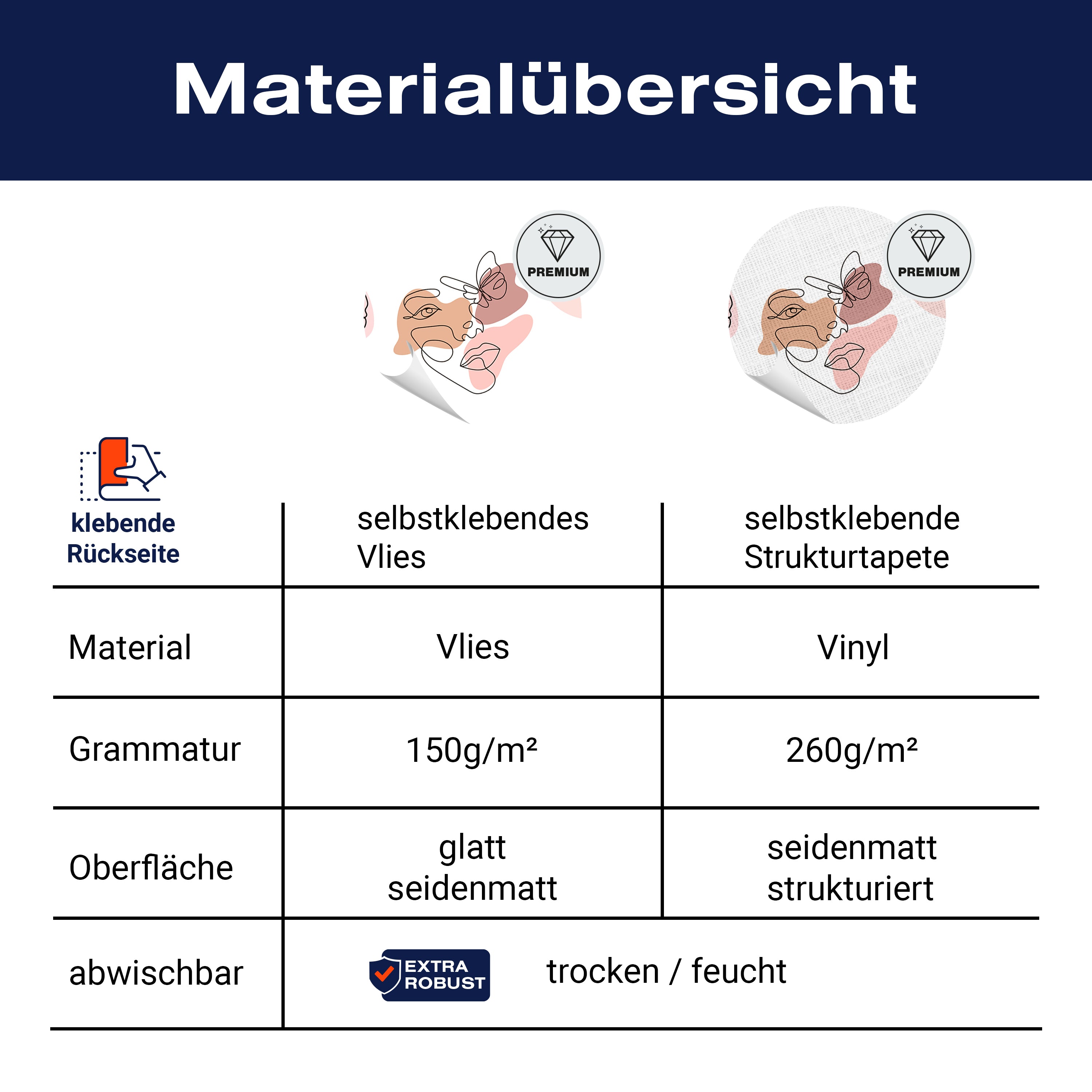 - Selbstklebendes Vlies 150g/m²: Einfach anzubringen, perfekt für Mietwohnungen.
