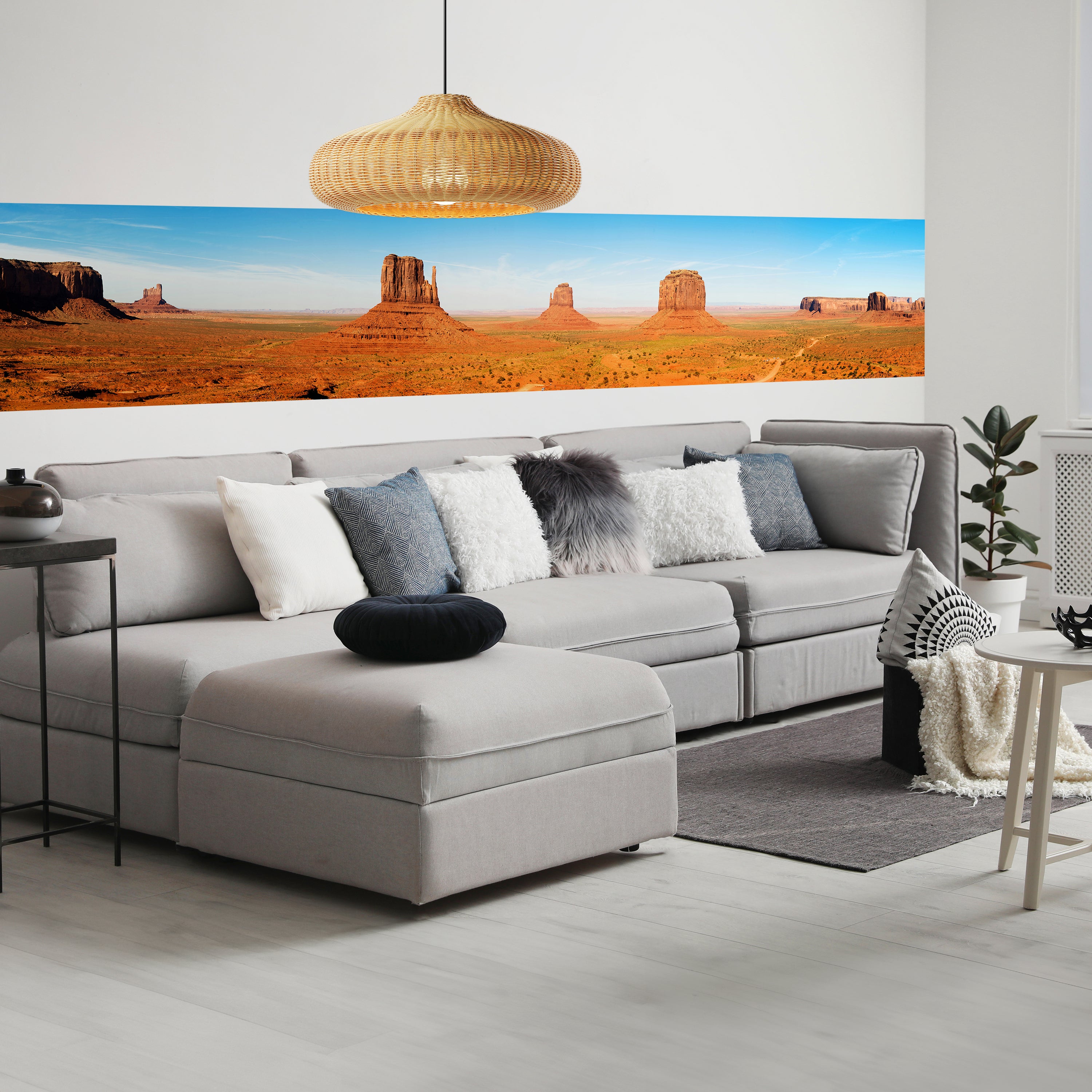 Träumst Du davon, Deine Wände in eine beeindruckende Kunstgalerie zu verwandeln? Mit unserer hochwertigen Panorama-Fototapete Monument Valley M0028 ist es jetzt möglich! Jede Wand wird zu einer Leinwand Deiner Kreativität.