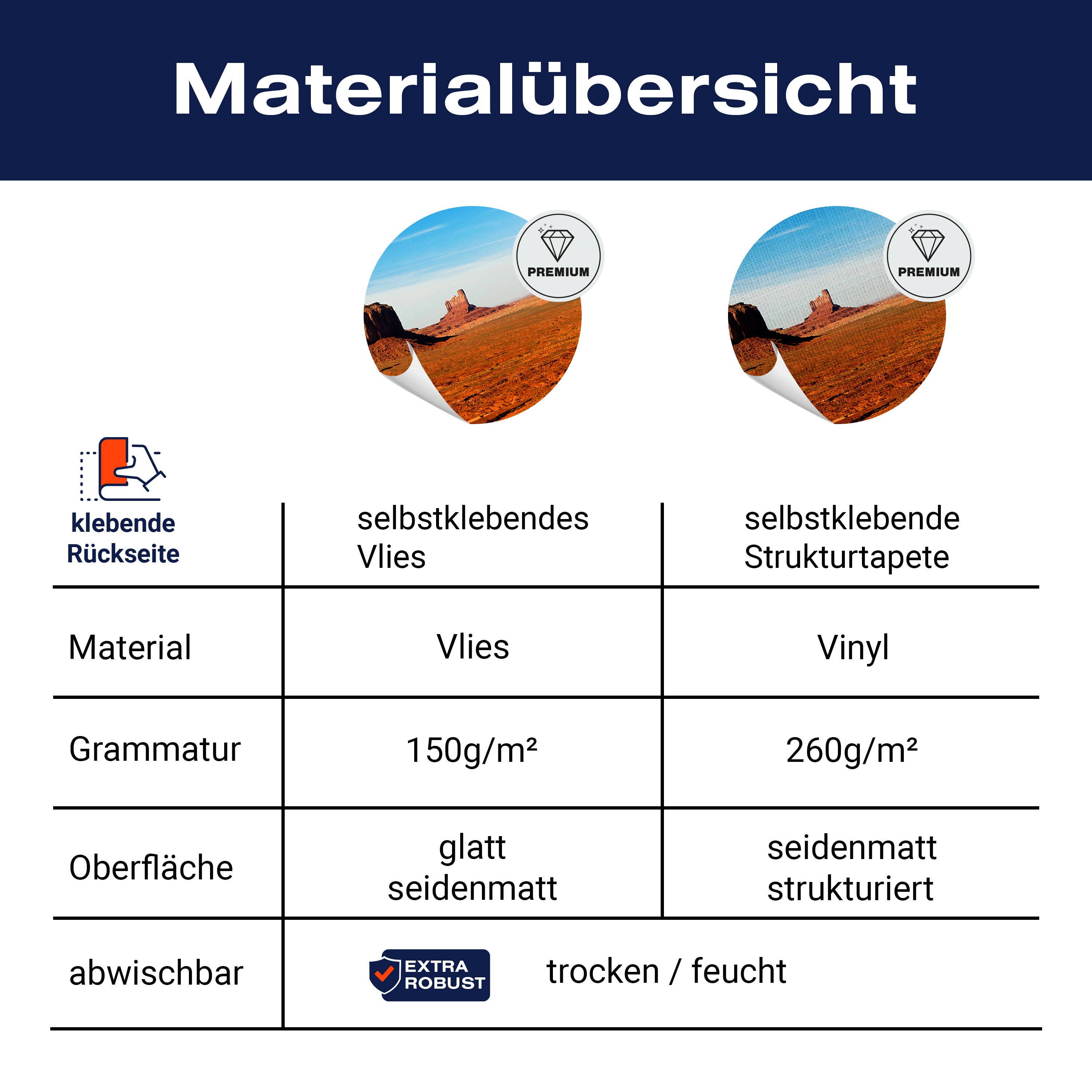 • Selbstklebendes Vlies 150g/m²: Einfach anzubringen, perfekt für Mietwohnungen.