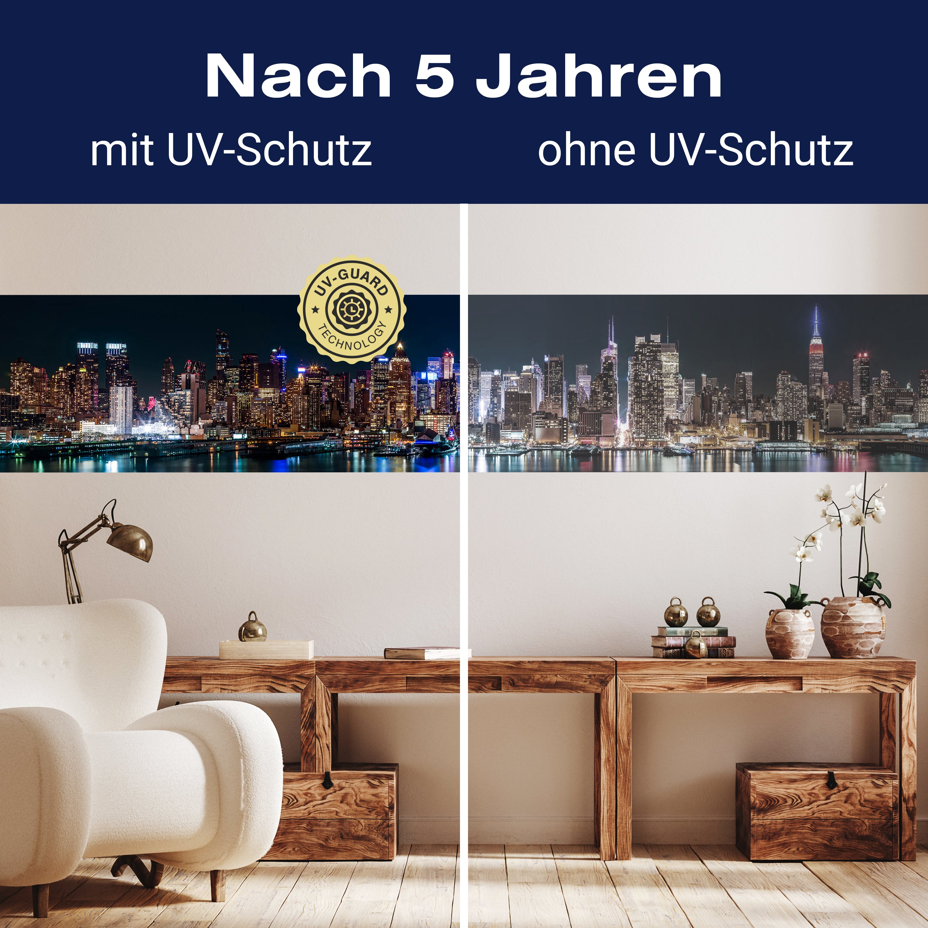 Setze auf die UV-Guard-Technologie, um deine selbstklebenden Panorama-Fototapeten nicht nur atemberaubend, sondern auch dauerhaft strahlend zu gestalten. Dieser fortschrittliche UV-Schutz sorgt dafür, dass die lebhaften Farben und scharfen Details deiner Wandgestaltung gegen die bleichende Wirkung der Sonnenstrahlen geschützt sind. Egal, wie intensiv das Sonnenlicht ist, die UV-Guard-Technologie bewahrt die Brillanz und Tiefe deiner Bilder, sodass sie jahrelang wie neu aussehen. Mach dir keine Sorgen mehr über verblassende Farben oder den Verlust von Detailreichtum. Mit dieser Technologie investierst du in die Langlebigkeit und Schönheit deiner Räume. Steige jetzt um auf UV-Guard und genieße ungetrübte Farbenpracht bei jedem Licht.