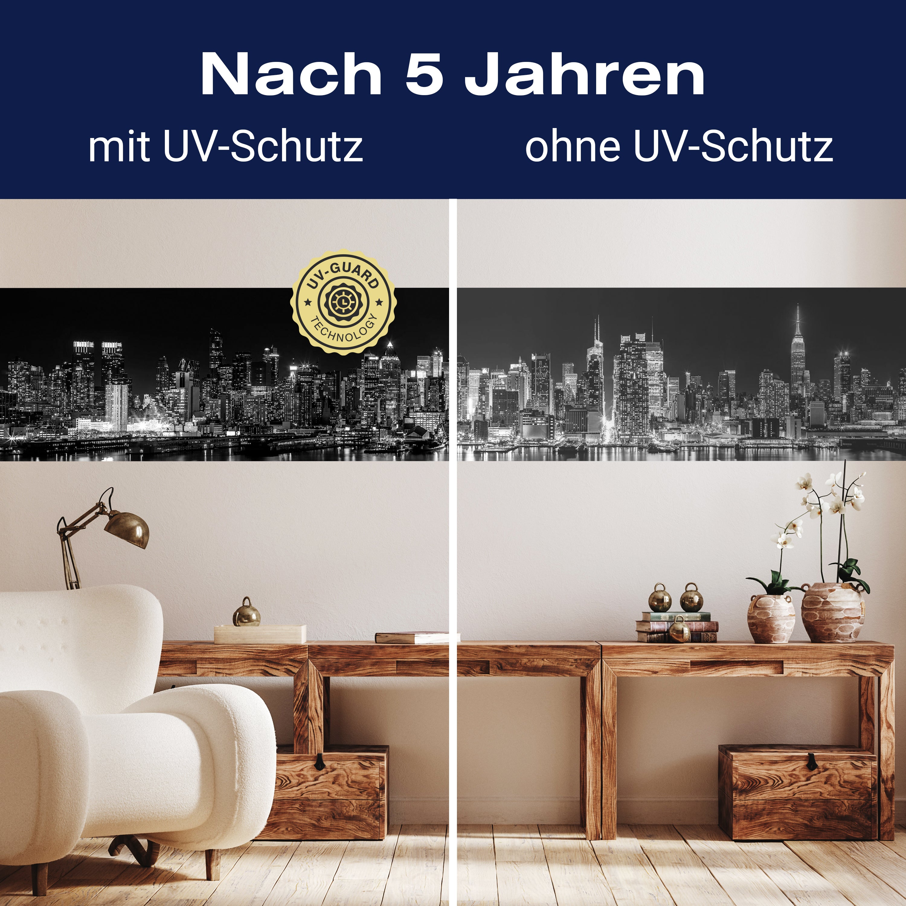 Setze auf die UV-Guard-Technologie, um deine selbstklebenden Panorama-Fototapeten nicht nur atemberaubend, sondern auch dauerhaft strahlend zu gestalten. Dieser fortschrittliche UV-Schutz sorgt dafür, dass die lebhaften Farben und scharfen Details deiner Wandgestaltung gegen die bleichende Wirkung der Sonnenstrahlen geschützt sind. Egal, wie intensiv das Sonnenlicht ist, die UV-Guard-Technologie bewahrt die Brillanz und Tiefe deiner Bilder, sodass sie jahrelang wie neu aussehen. Mach dir keine Sorgen mehr über verblassende Farben oder den Verlust von Detailreichtum. Mit dieser Technologie investierst du in die Langlebigkeit und Schönheit deiner Räume. Steige jetzt um auf UV-Guard und genieße ungetrübte Farbenpracht bei jedem Licht.