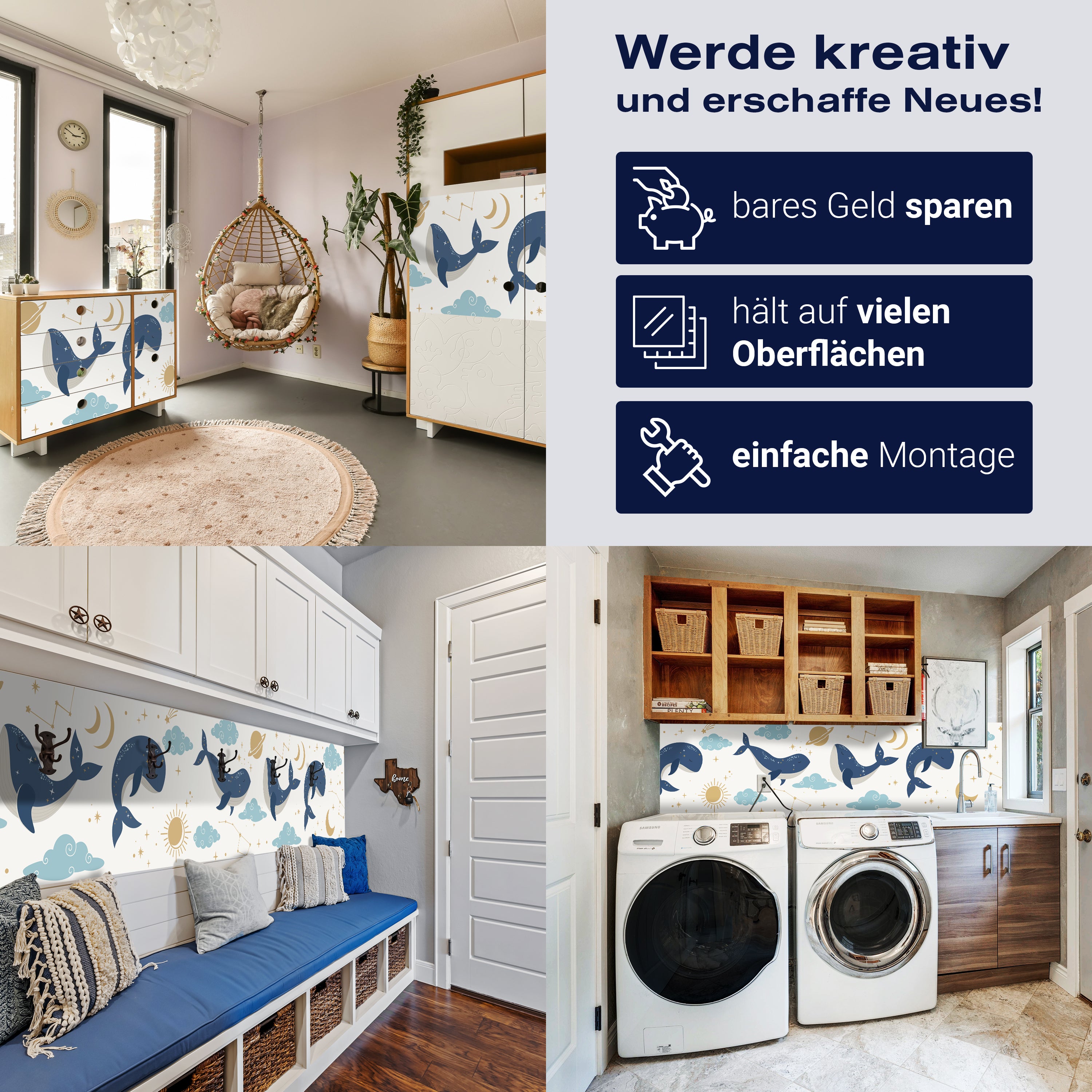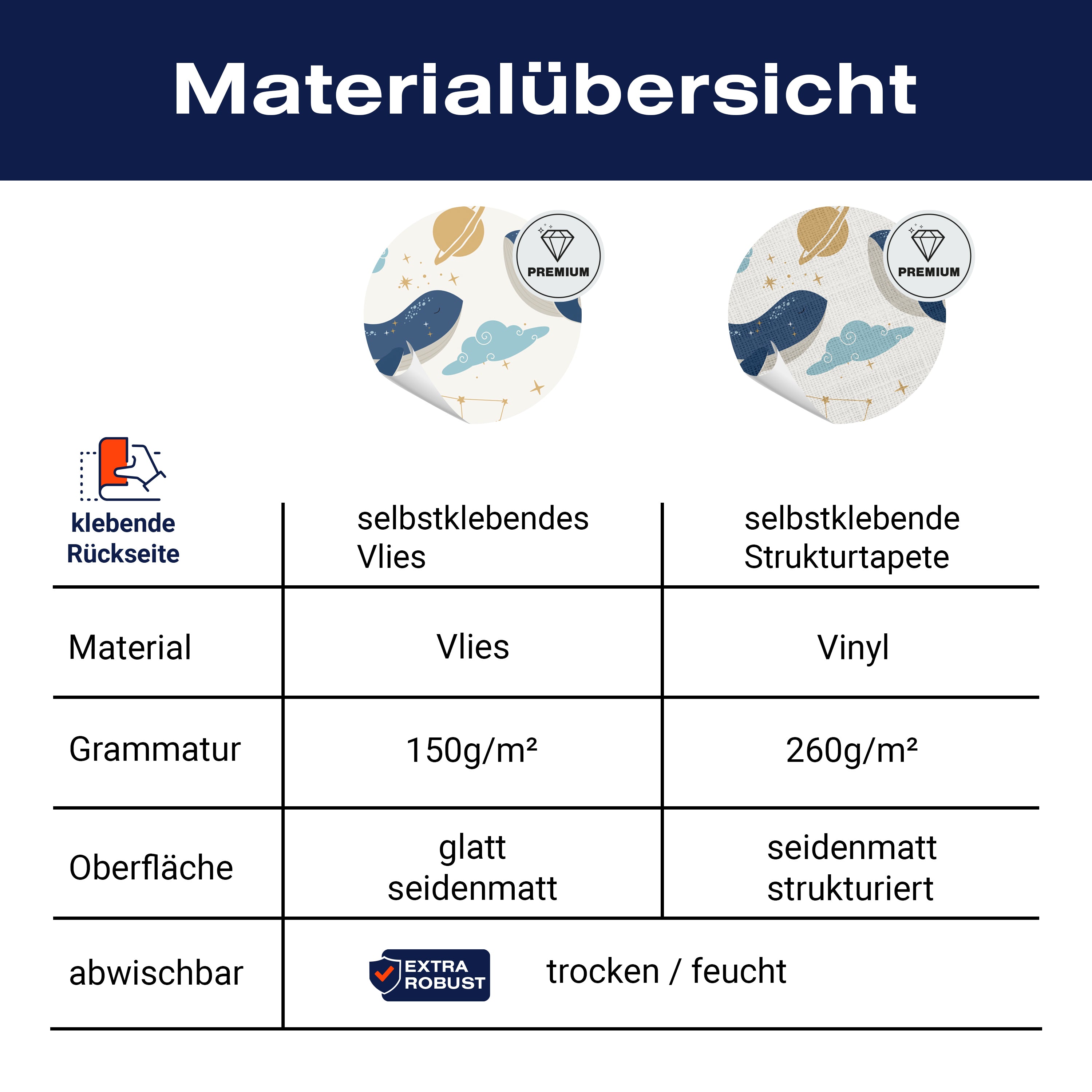 - Selbstklebendes Vlies 150g/m²: Einfach anzubringen, perfekt für Mietwohnungen.