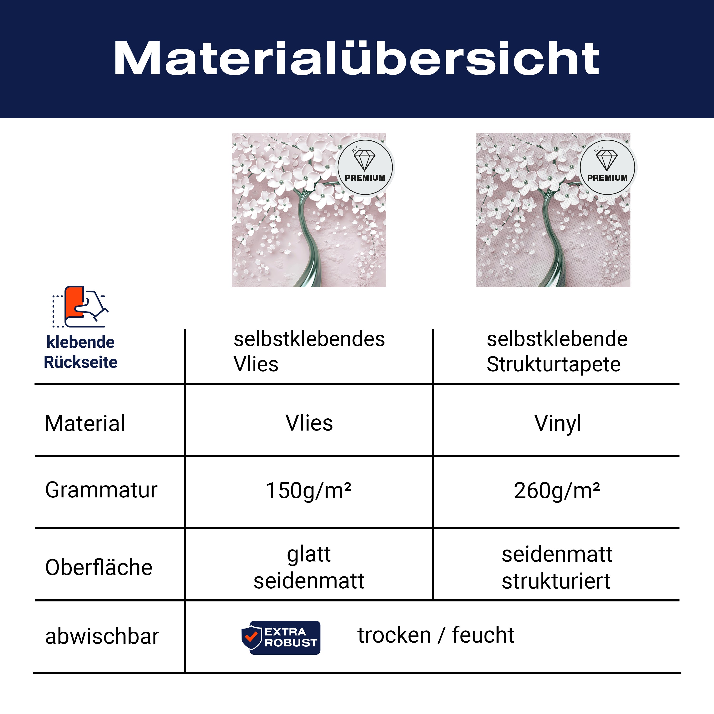 - Selbstklebendes Vlies 150g/m²: Einfach anzubringen, perfekt für Mietwohnungen.
