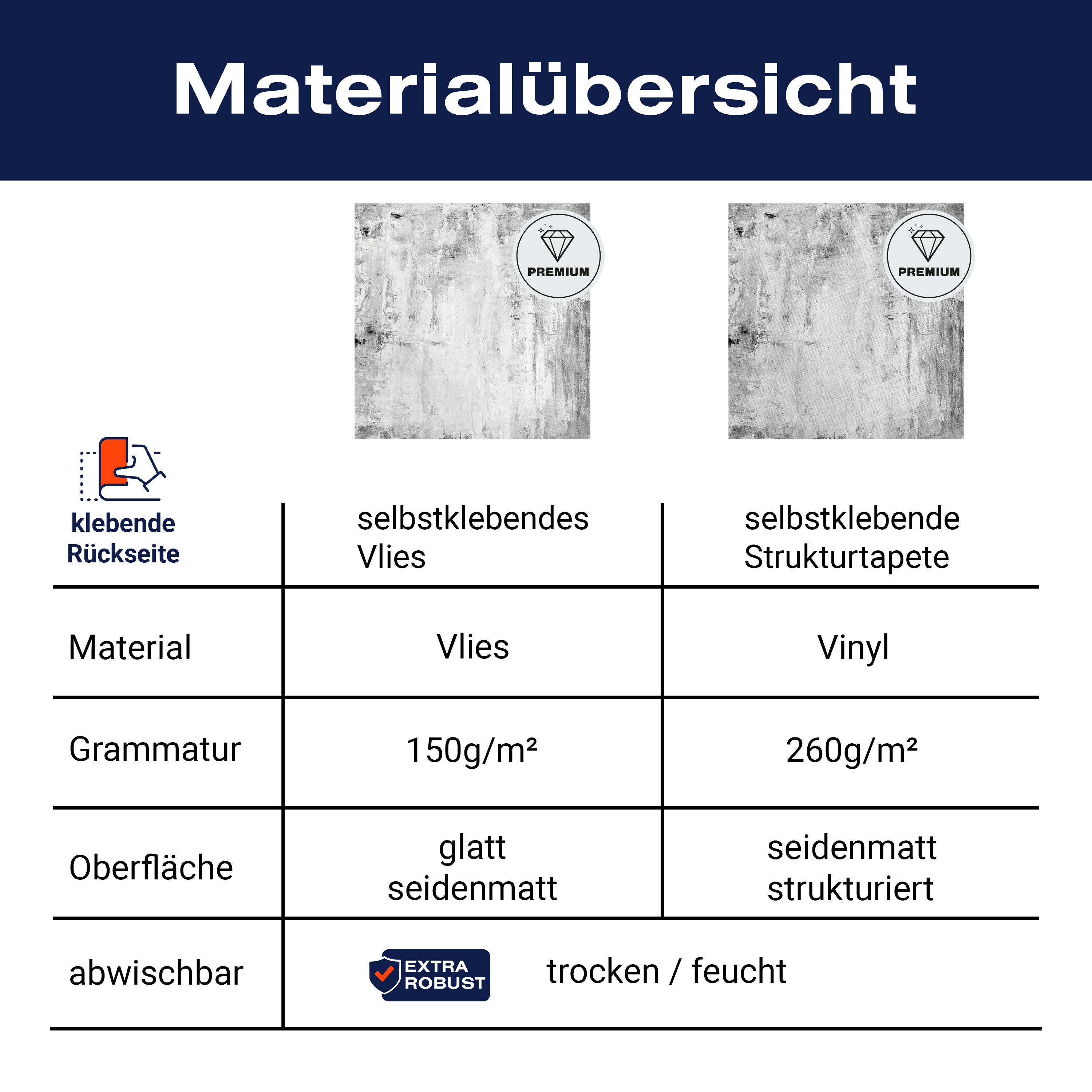 - Selbstklebendes Vlies 150g/m²: Einfach anzubringen, perfekt für Mietwohnungen.