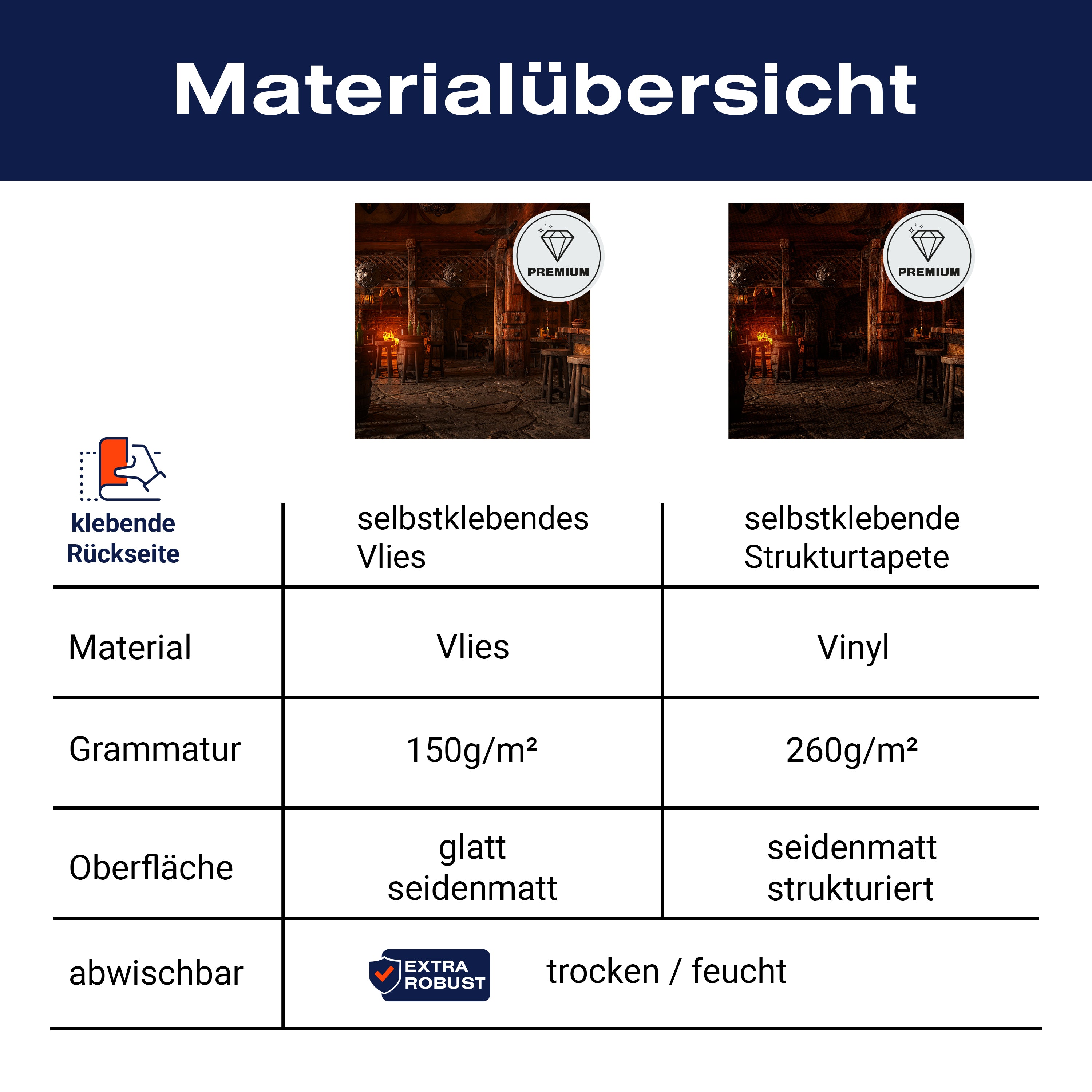 - Selbstklebendes Vlies 150g/m²: Einfach anzubringen, perfekt für Mietwohnungen.