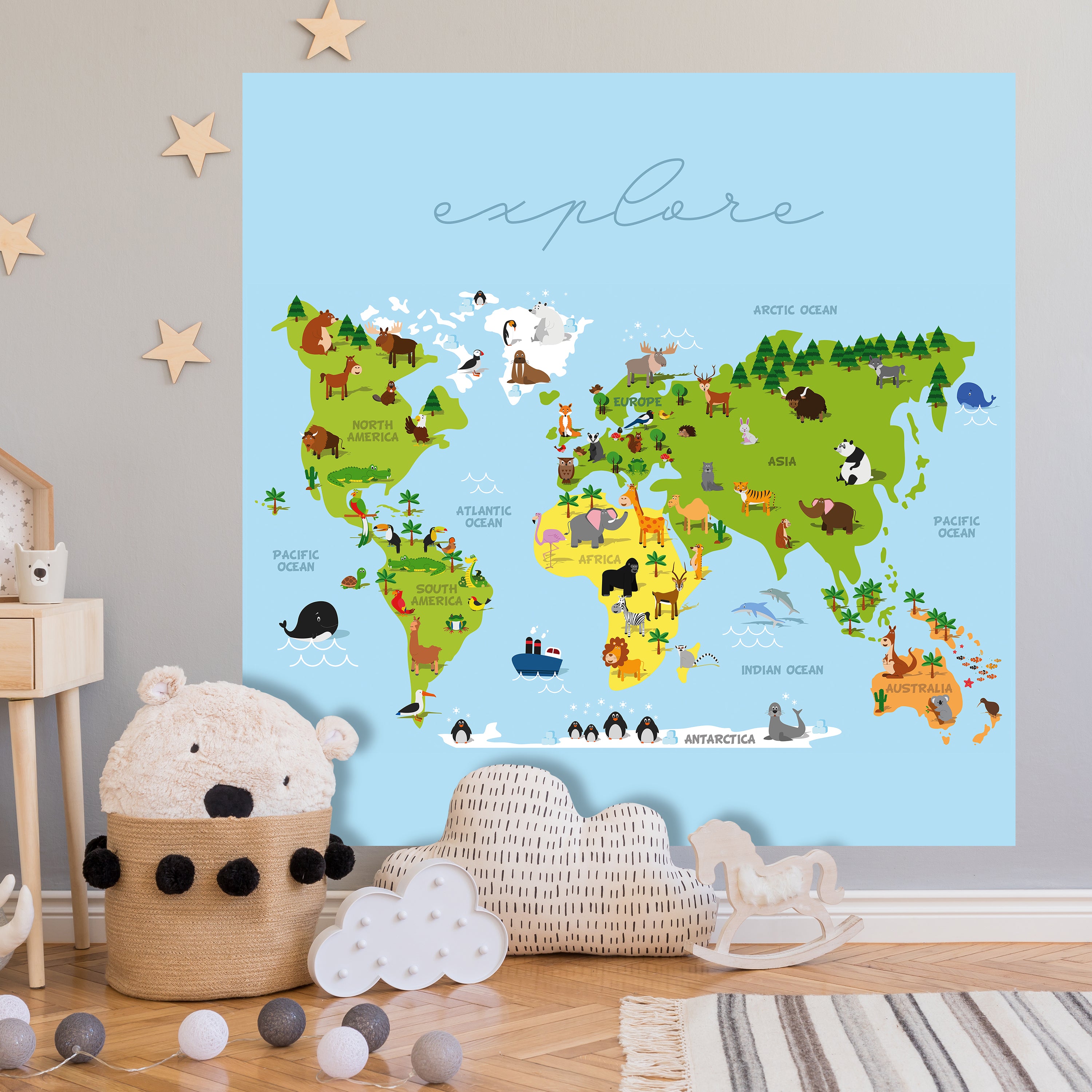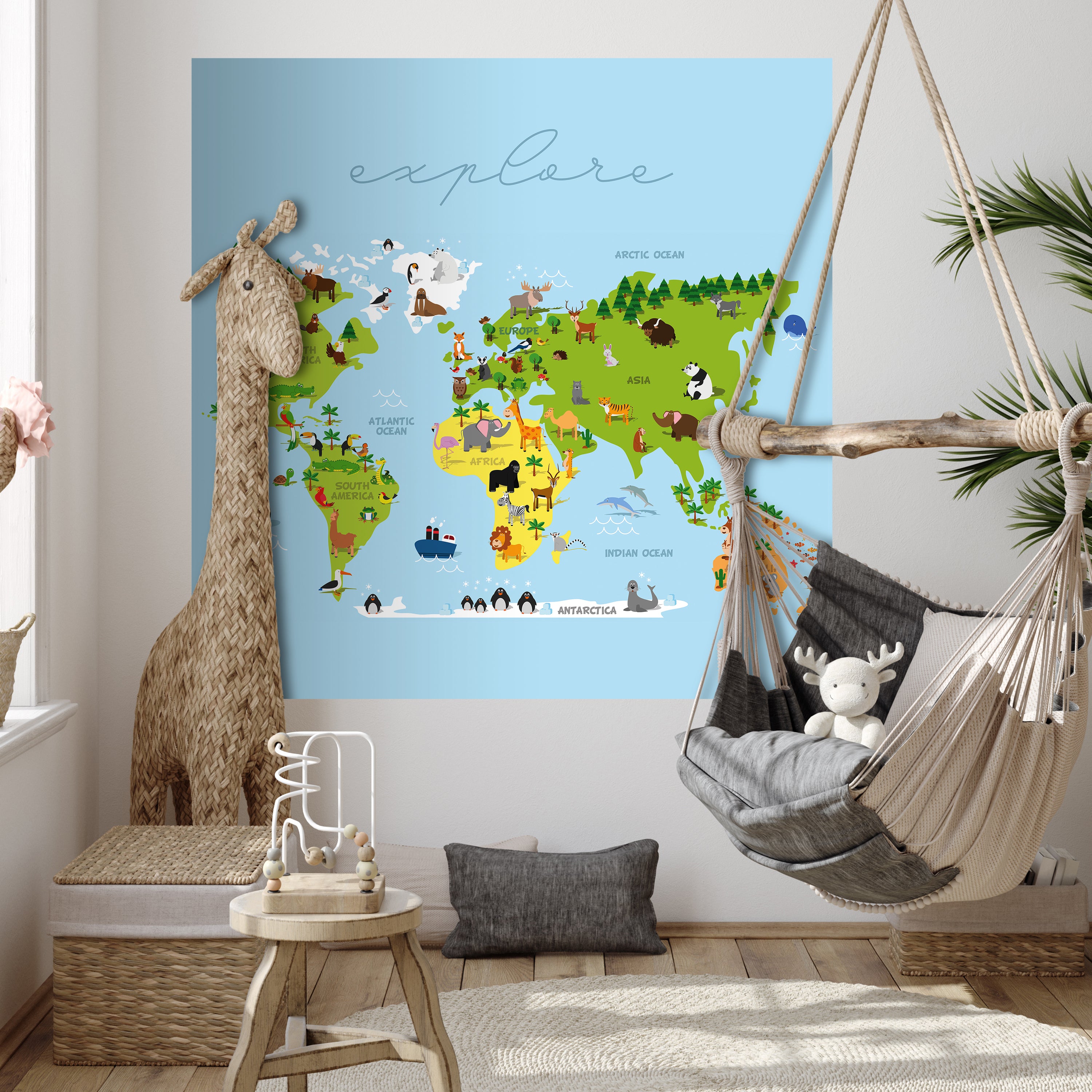 Träumst Du davon, Deine Wände in eine beeindruckende Kunstgalerie zu verwandeln? Mit unserer hochwertigen, quadratischen Fototapete Weltkarte mit Tieren M0011 ist es jetzt möglich! Jede Wand wird zu einer Leinwand Deiner Kreativität.