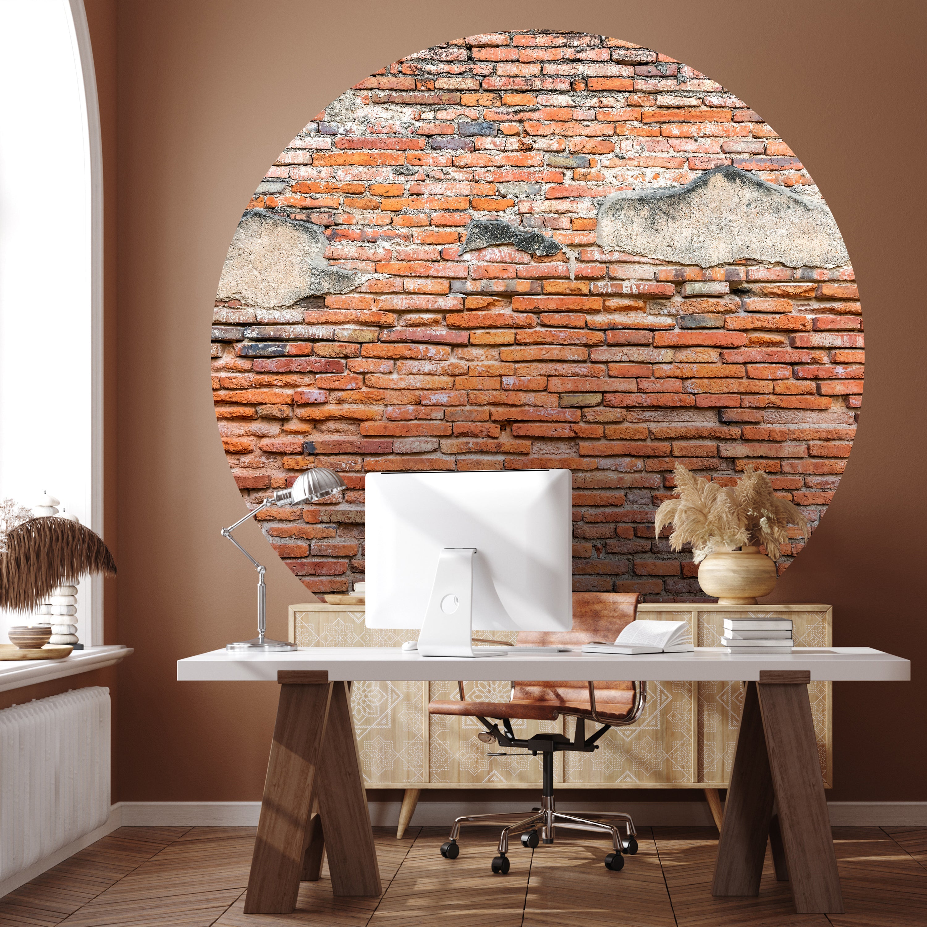 RUNDE FOTOTAPETE alte Ziegelwand Backstein