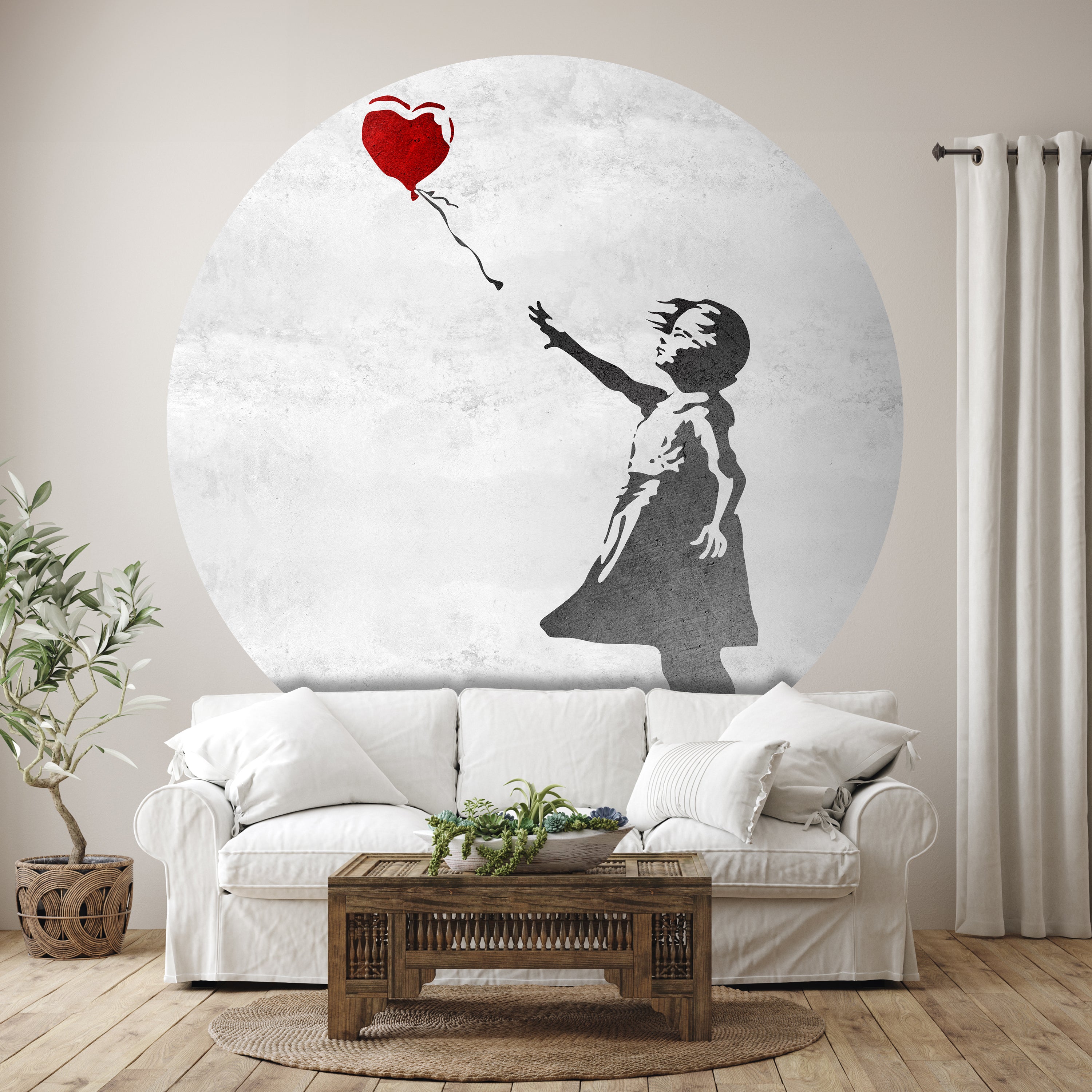 Träumst Du davon, Deine Wände in eine beeindruckende Kunstgalerie zu verwandeln? Mit unserer hochwertigen, runden Fototapete Banksy Street Art M0065 ist es jetzt möglich! Jede Wand wird zu einer Leinwand Deiner Kreativität.