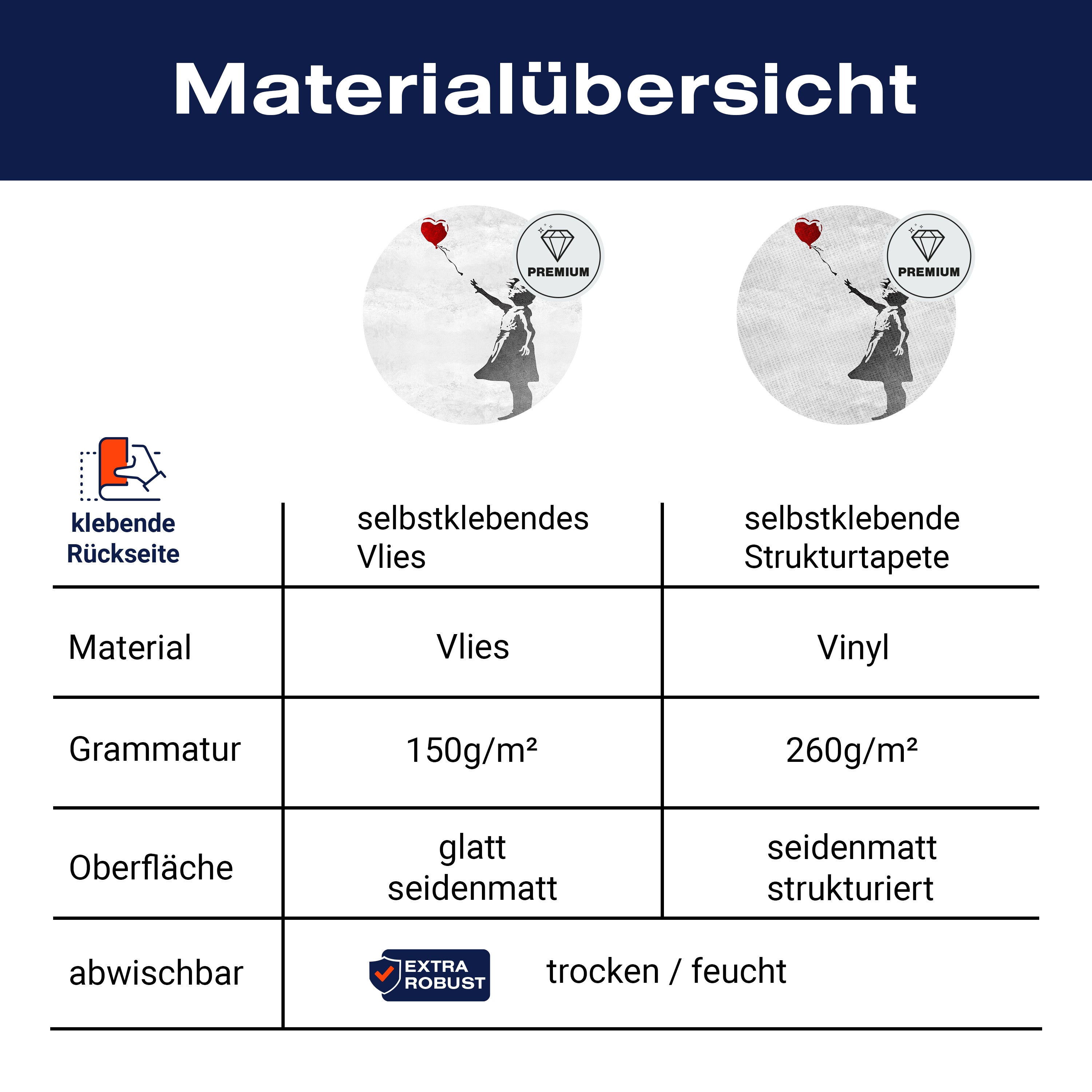 - Selbstklebendes Vlies 150g/m²: Einfach anzubringen, perfekt für Mietwohnungen.