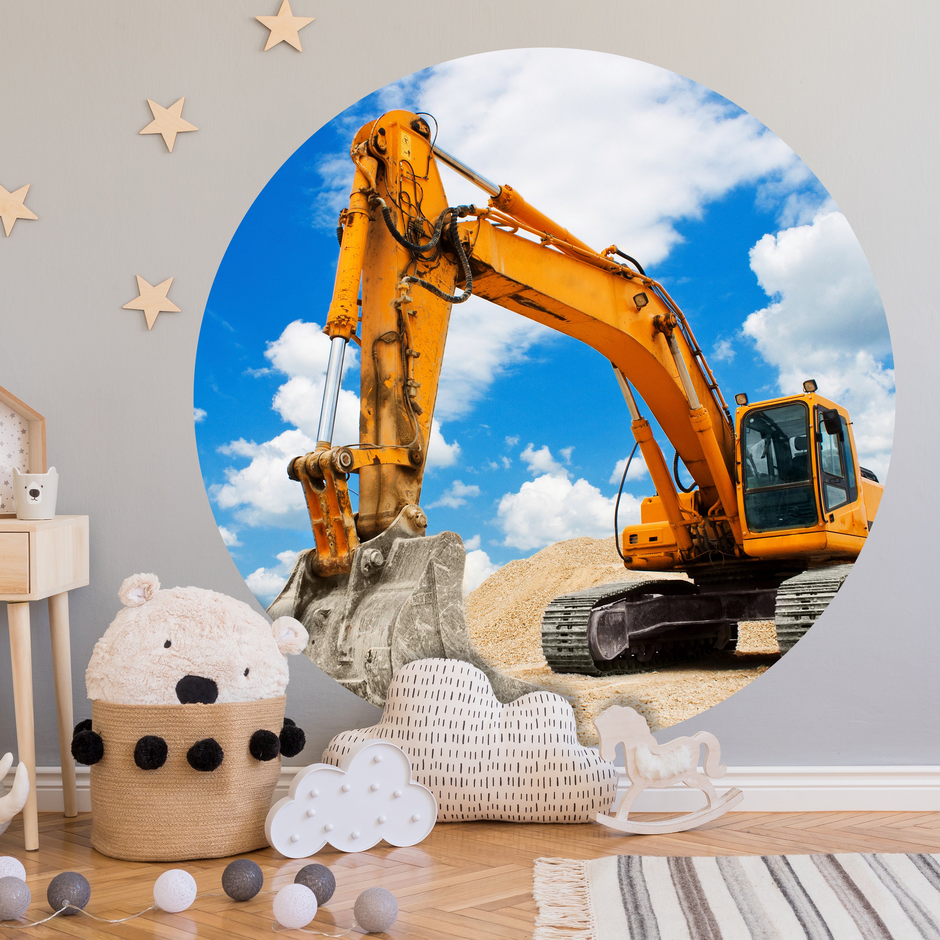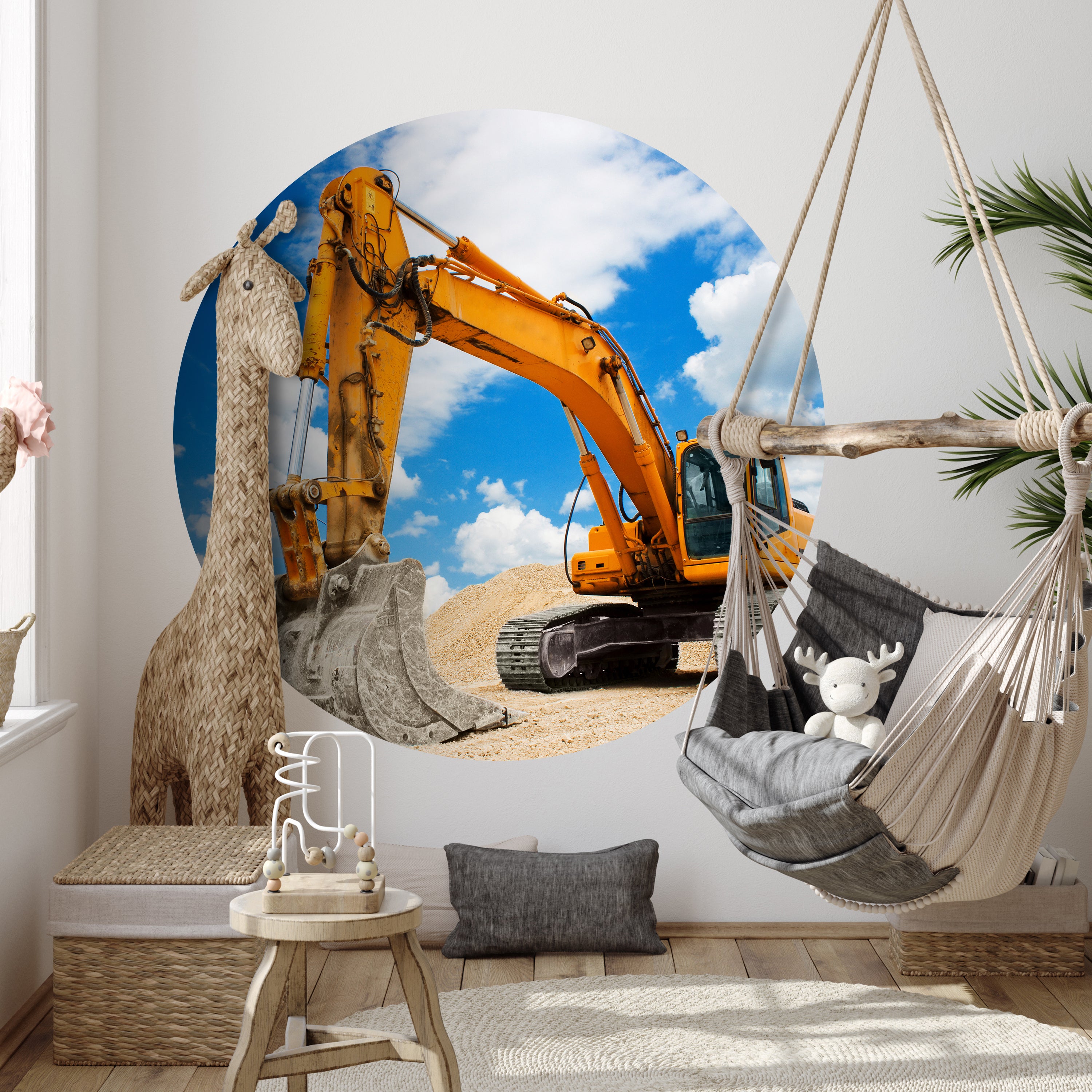Runde Fototapete gelber Bagger M0002 - Bild 1