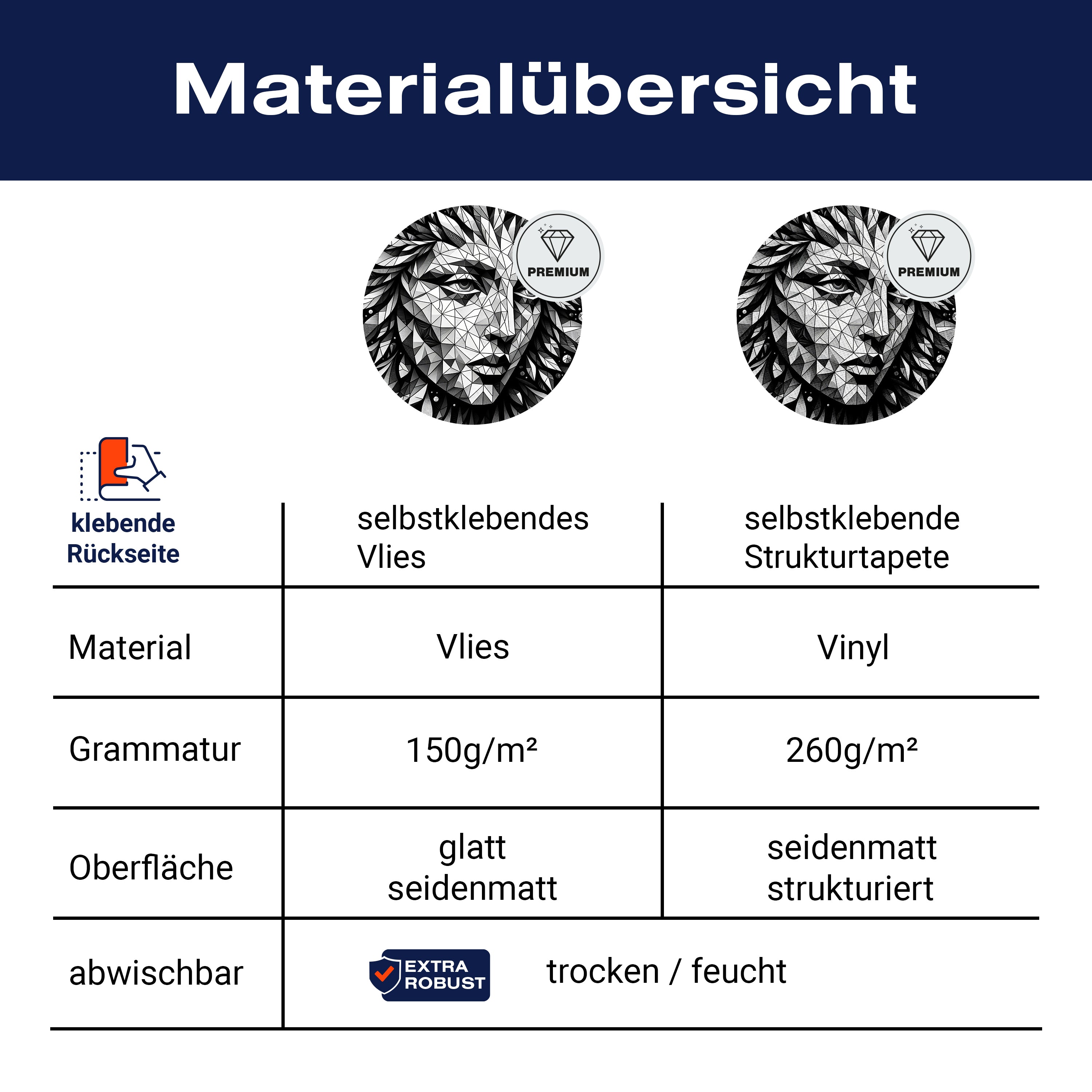 - Selbstklebendes Vlies 150g/m²: Einfach anzubringen, perfekt für Mietwohnungen.