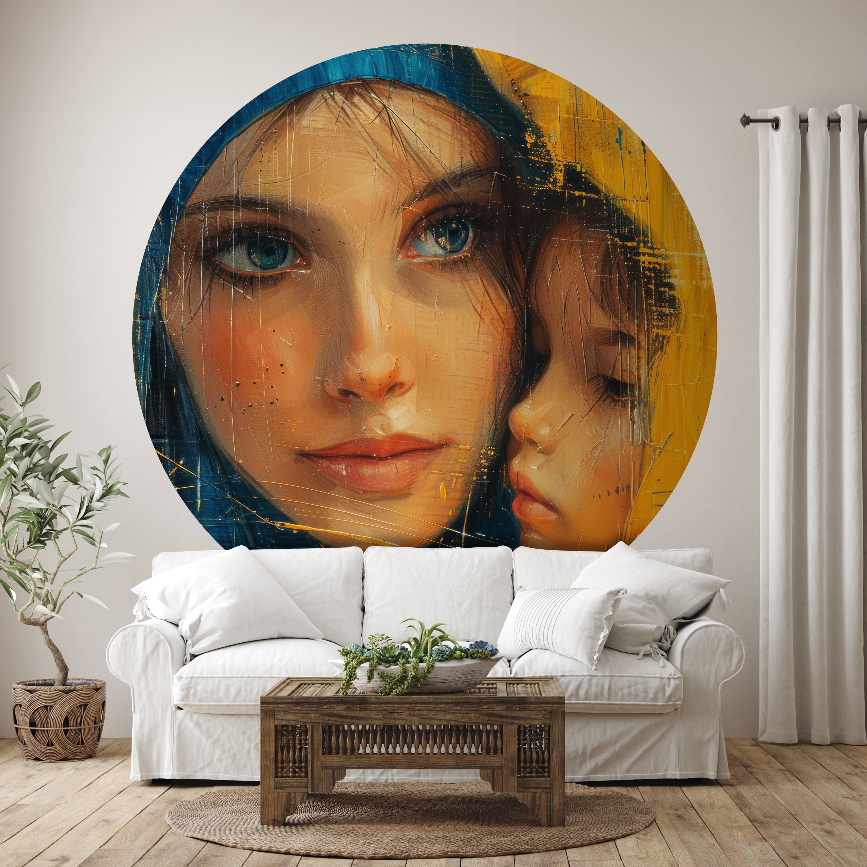 RUNDE FOTOTAPETE Malerei Frau Kind