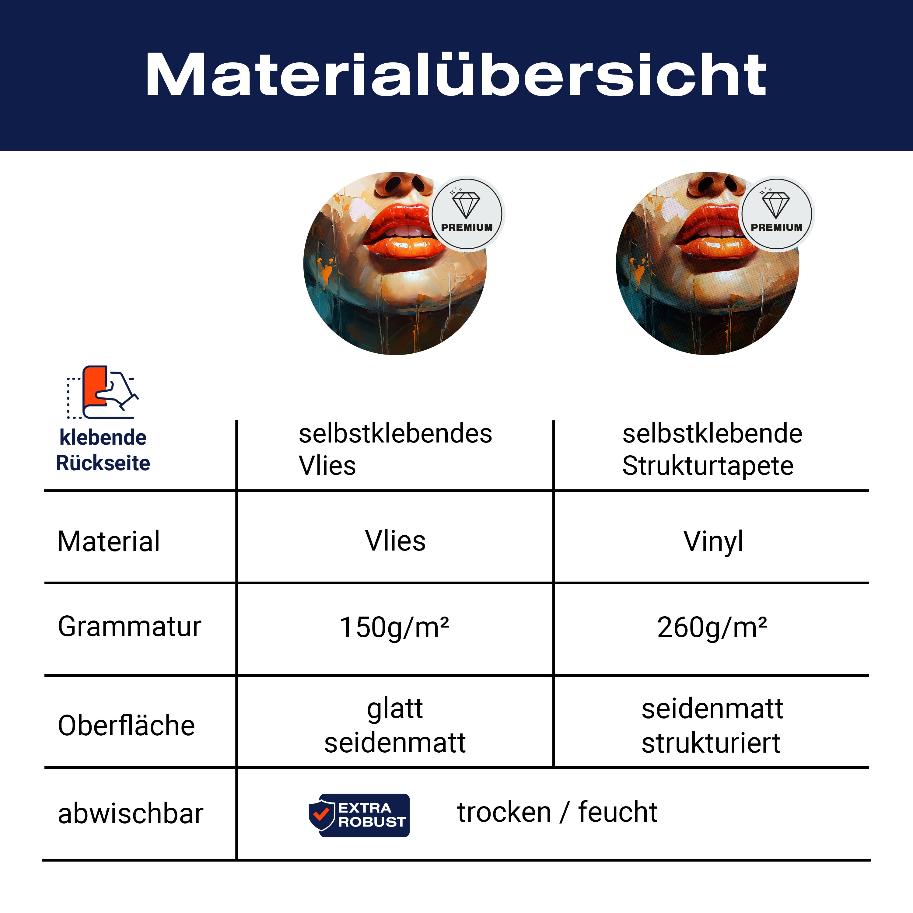 - Selbstklebendes Vlies 150g/m²: Einfach anzubringen, perfekt für Mietwohnungen.