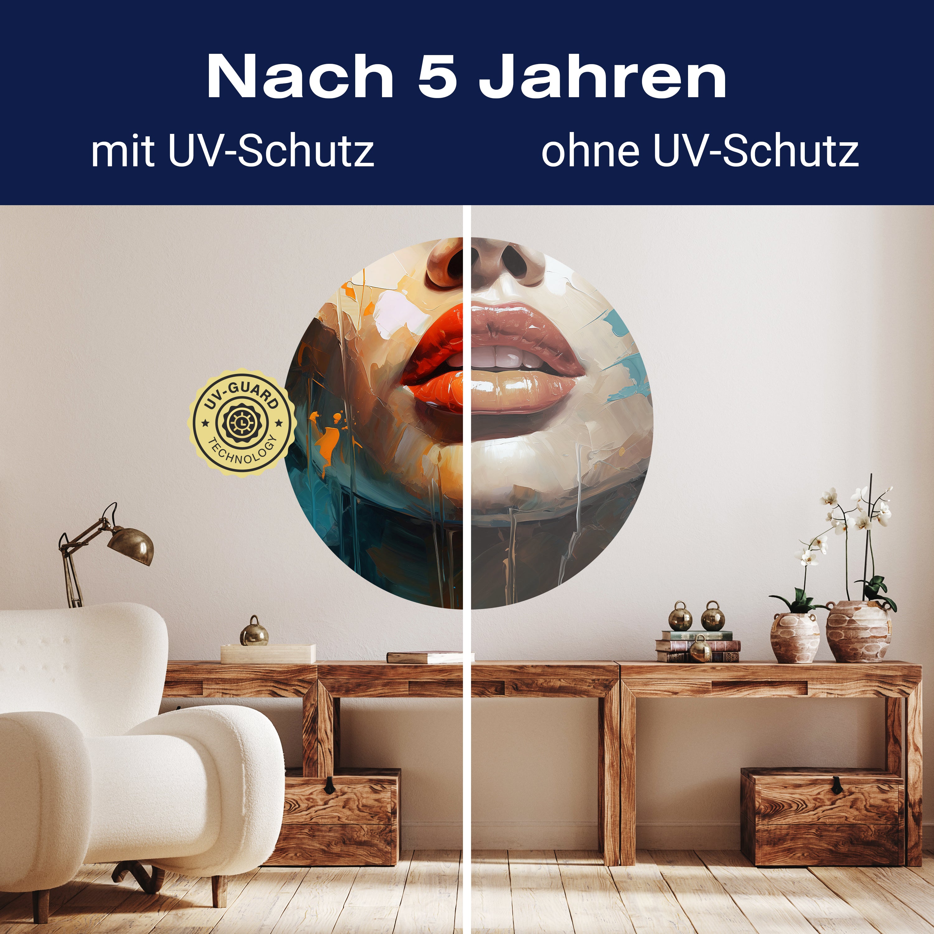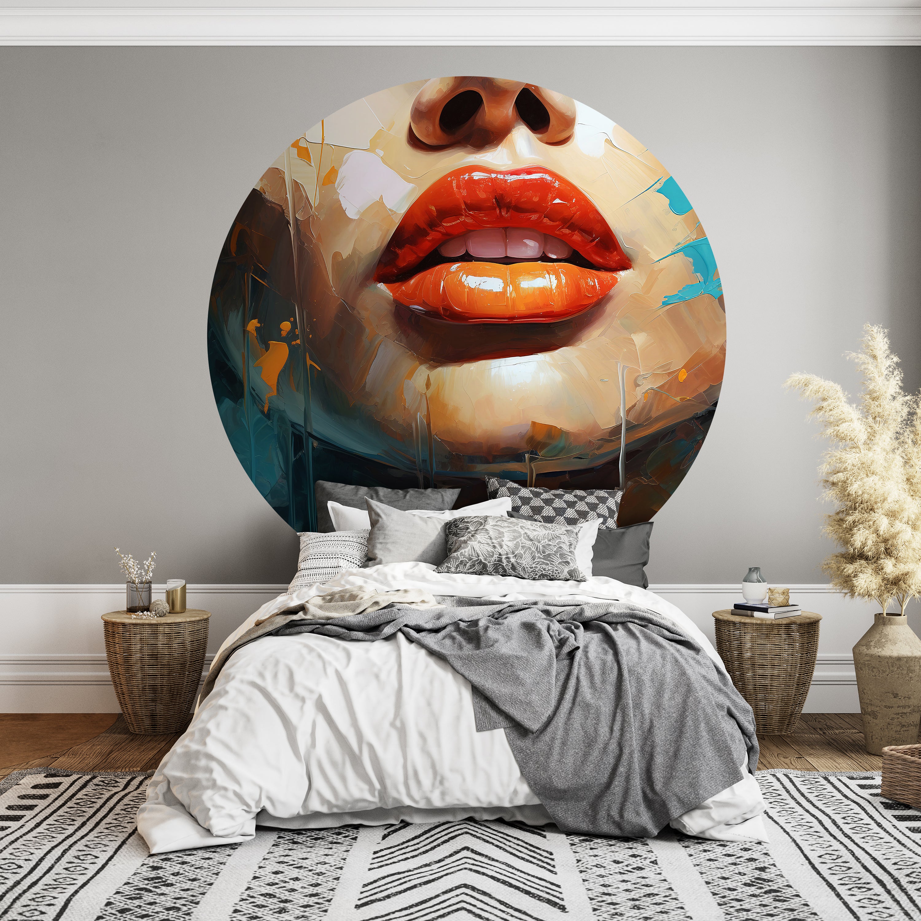 Träumst Du davon, Deine Wände in eine beeindruckende Kunstgalerie zu verwandeln? Mit unserer hochwertigen, runden Fototapete Malerei Frau Lippen M0052 ist es jetzt möglich! Jede Wand wird zu einer Leinwand Deiner Kreativität.