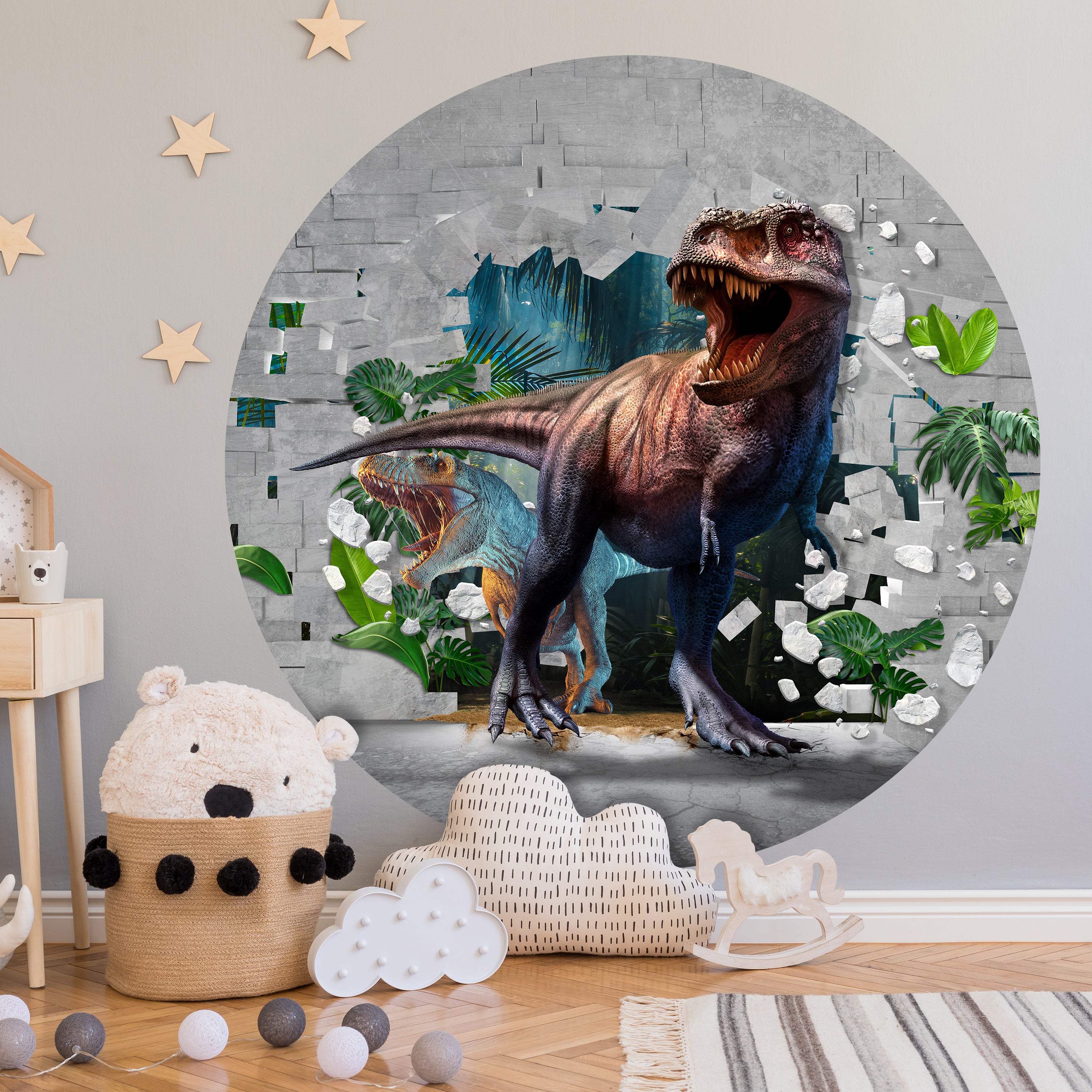 RUNDE FOTOTAPETE Wanddurchbruch mit Dinosauriern