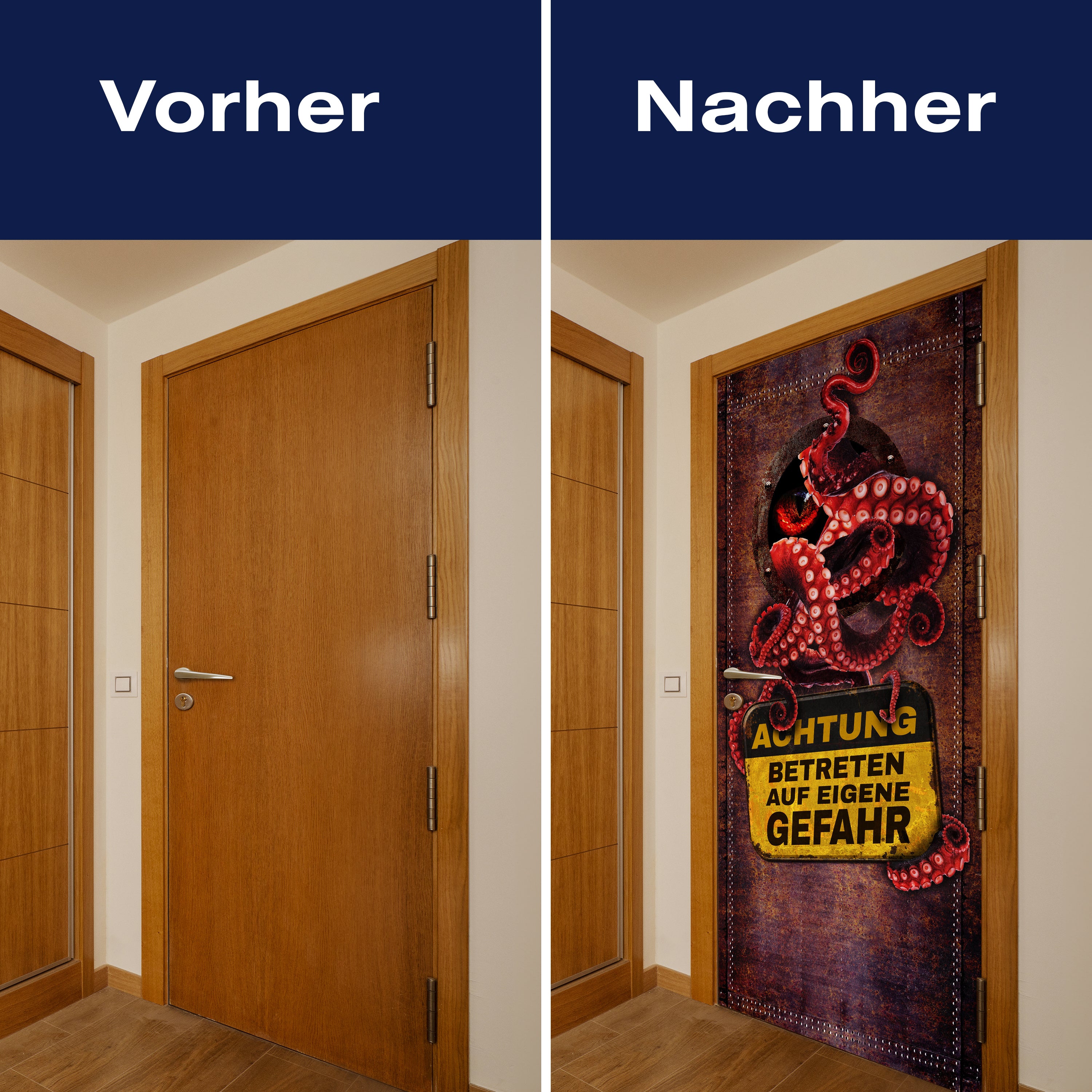 Entdecke die Türtapete ACHTUNG! Rostige Tür, Krake, Tintenfisch